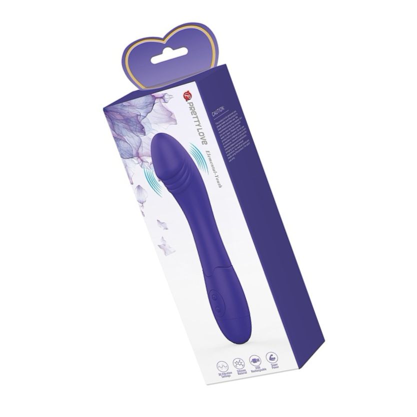 Pretty Love Elemental Youth este un vibrator compact, optimizat pentru stimularea punctului G. Designul încovoiat și corpul îngust încuviințează contactul directă și controlată a punctului vizat, cu trăiri variate oferite de cele 30 de moduri de vibrație.