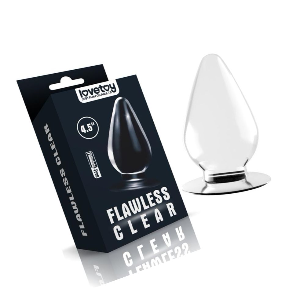 Fabricat din TPE excluzând ftalaţi şi lipsit de latex, Dopul anal Flawless Clear 11.5 cm oferă inserare controlată şi confort. Vârf conic, gât subțire şi bază flared pentru siguranţă. Transparent, mătăsos şi aferent cu lubrifianţi pe bază de apă. Curăţare simplă.