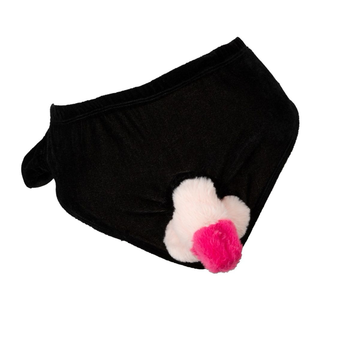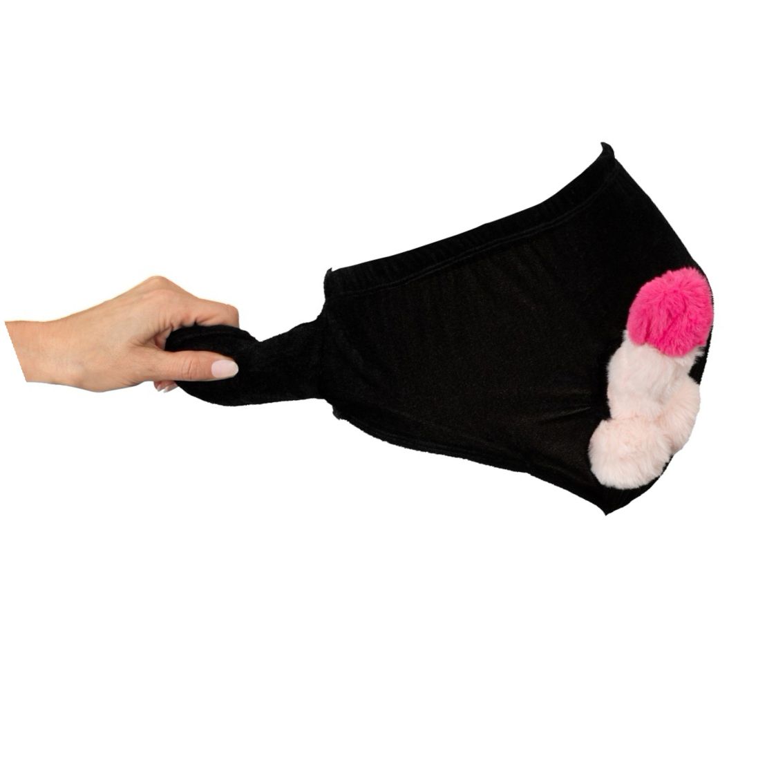 Boxeri negri cu element plușat gonflabil — un obiect de divertisment care atrage privirile. Membrul din pluș poate fi umflat iute cu susținerea bilei‑pompă ascunse, dând un urmare amuzant și clar vizibil. Mărime unică, material pufos 100% poliester.