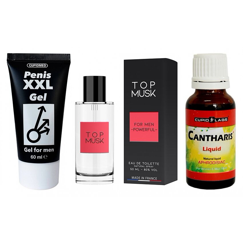 Detalii importante: - Mr XXL Gel (60 ml): formulă pentru stimularea circulației locale și senzație de volum; desăvârșit pentru masaj prelungit sau aplicare punctuală înainte de act. - Cantharis Plus (20 ml): extract pe bază de plante, dozare practică cu pipetă; utilizare cu 30 minute înainte, maxim 2 sesiuni în 24h. - Esență hormoni de atracție Mosc (50 ml): sticlă elegantă, pulverizare controlată; alcătuie atracție prin note olfactive calde.