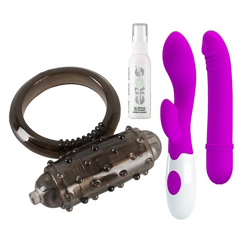 Kit-ul care modifică serile în experiențe intense: preludiu care încălzește, penetrare mai fermă și stimulare precisă. Articolele se întregește perfect — inelul prelungește, două vibratoare oferă varietate, iar spray-ul păstrează totul curat și sigur.