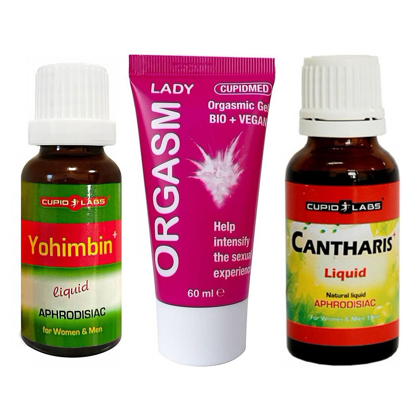 Detalii despre produse: - Gel Climax Lady (60 ml): formulă hipoalergenică, lipsit de parfum, realizat pentru creșterea sensibilității și emoții de furnicături/încălzire; textură potrivită pentru masaj preludiu, compatibil cu majoritatea lubrifianților. - Picături Cantharis Plus (20 ml): bază din extracte vegetale, flacon cu dozator practic; doza uzuală 10–15 picături în lichid sau sub limbă, cu efect în ~30 minute; prescris pentru ambii parteneri pentru a stimula dorința și energie. - Afrodiziac Yohimbin Drops (20 ml): extras de yohimbină, cunoscut pentru susținerea circulației și intensificarea senzațiilor; administrare 15–20 picături în apă cu 30 minute înainte, susține vigoarea și rezistența sexuală.