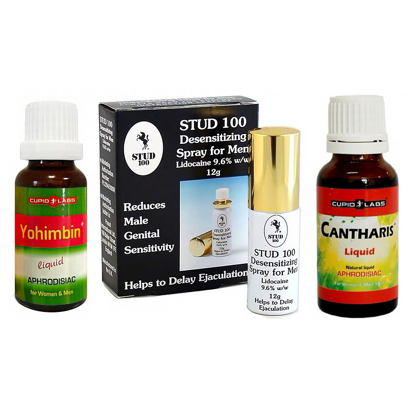 Detalii utile pe produs: - Sprayul pentru întârziere: limitează temporar sensibilitatea locală pentru a prelungi contactul, intră rapid în acțiune și se administrează foarte simplu. Ideal pentru bărbații care vor mai mult control fără a afecta delectarea partenerului. - Picăturile Cantharis: preparat pe bază de plante, accentuează instinctul sexual și furnizează un val de energie emoțională; se pot pune în lichide sau sub limbă, iar efectul apare repede la majoritatea utilizatorilor. - Yohimbin Drops: extract normal care susține circulația sangvină și vitalitatea, contribuind la intensificarea erecțiilor și la o senzație generală de forță; se dizolvă în apă și acționează în jumătate de oră.