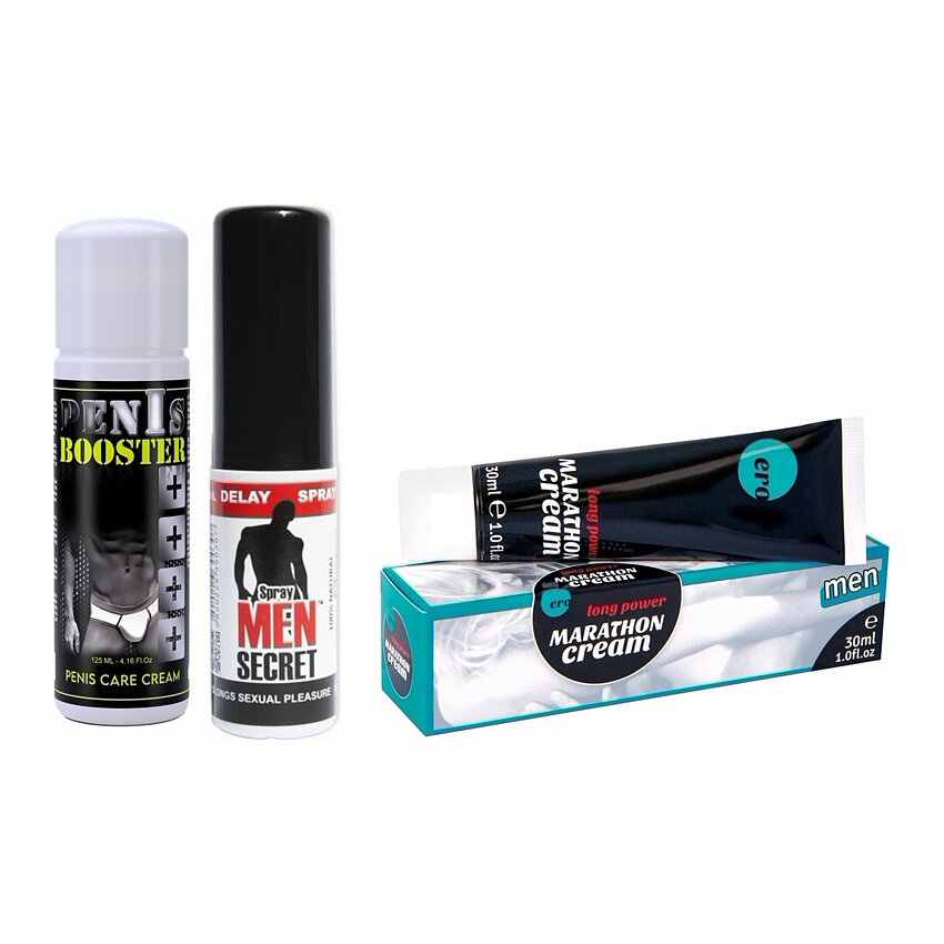 Detalii esențiale ale produselor: - Men Secret Spray 15 ml: procedeu destinată reducerii sensibilității locale pentru control mai bun al momentului ejaculării; compact, ușor de dozat și realizat pentru uz masculin. - Cremă Marathon 30 ml: formulă cu ingrediente care susțin circulația locală (extracte naturale, compuși calmanți și emolienți), destinată prelungirii erecției și sporirii rezistenței; aplicare grabnică și absorbție eficientă. - Crema Booster 125 ml: flacon darnic cu componente stimulatoare (extracte revitalizante și uleiuri nutritive) care intensifică fermitatea, volumul perceput și vitalitatea sexuală; conformă pentru utilizări regulate sau înainte de întâlniri importante.
