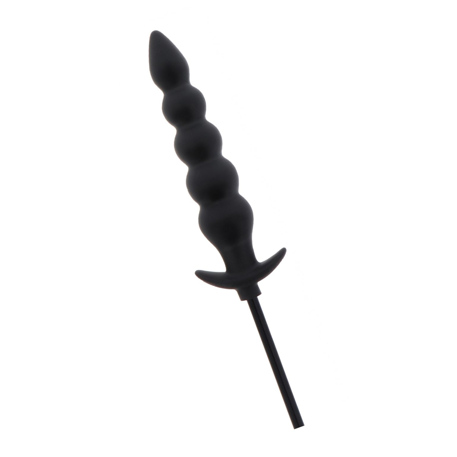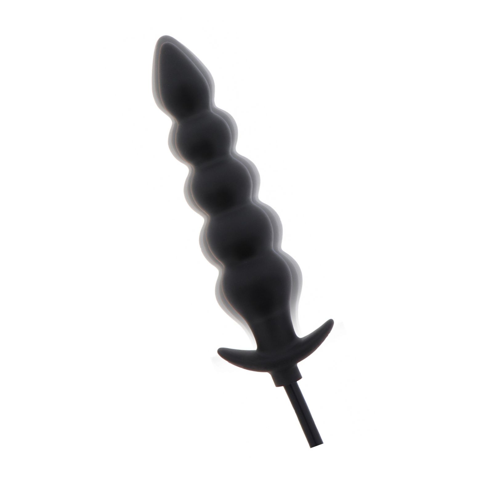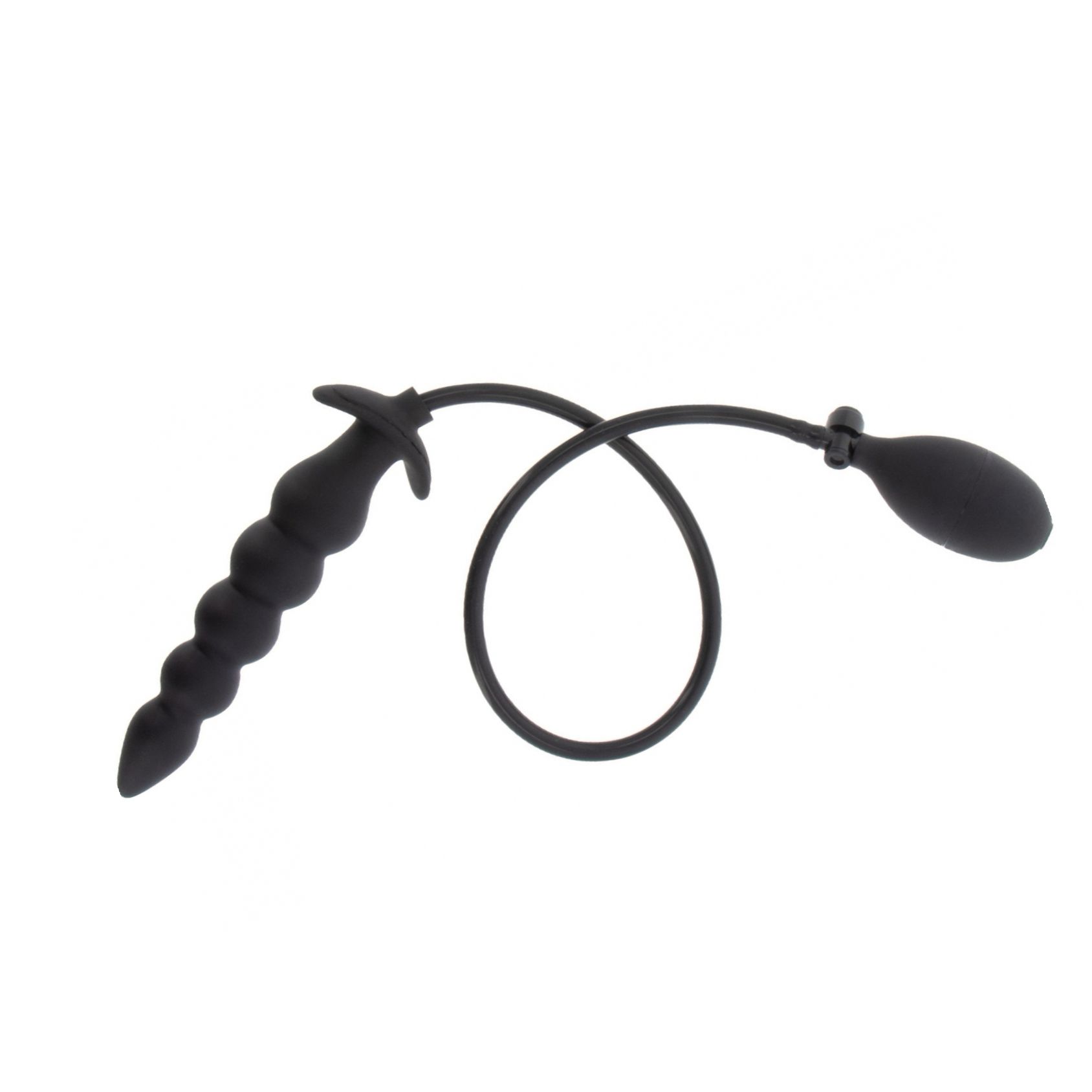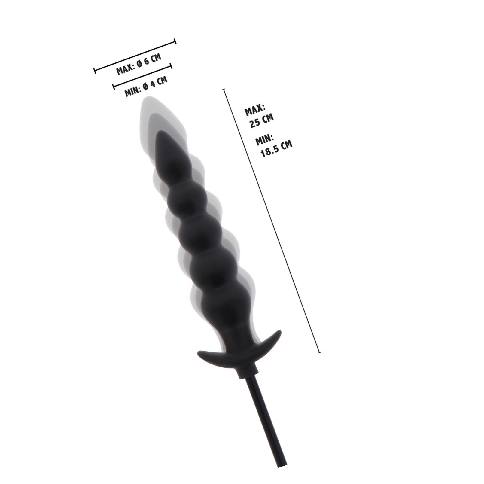 Plug anal gonflabil, din silicon 100% — striat, cu supapă grabnică de eliberare. Inserabil 18.5–23 cm, diametru 4–5.5 cm. Ajustează umflarea pentru senzaţie de plenitudine. Culoare: negru. Marcă: Hidden Desire.