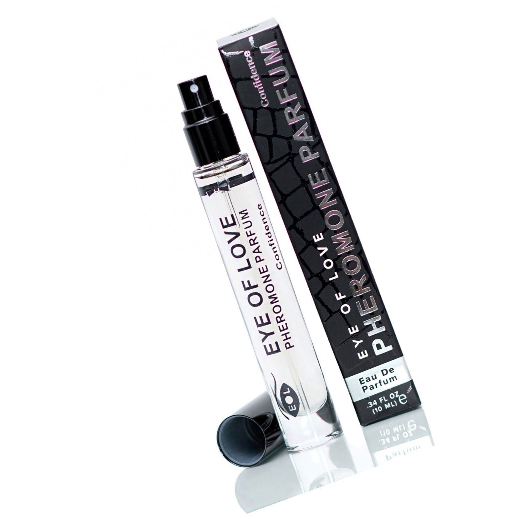 Parfum cu feromoni Eye of Love 10 ml, compact și discret. La dispoziție în două variante: Confidence (mosc, miere, iasomie, vanilie) și Romantic (mușchi de stejar, lemongrass, santal, iasomie). Aplicare punctuală pe încheieturi sau guler.