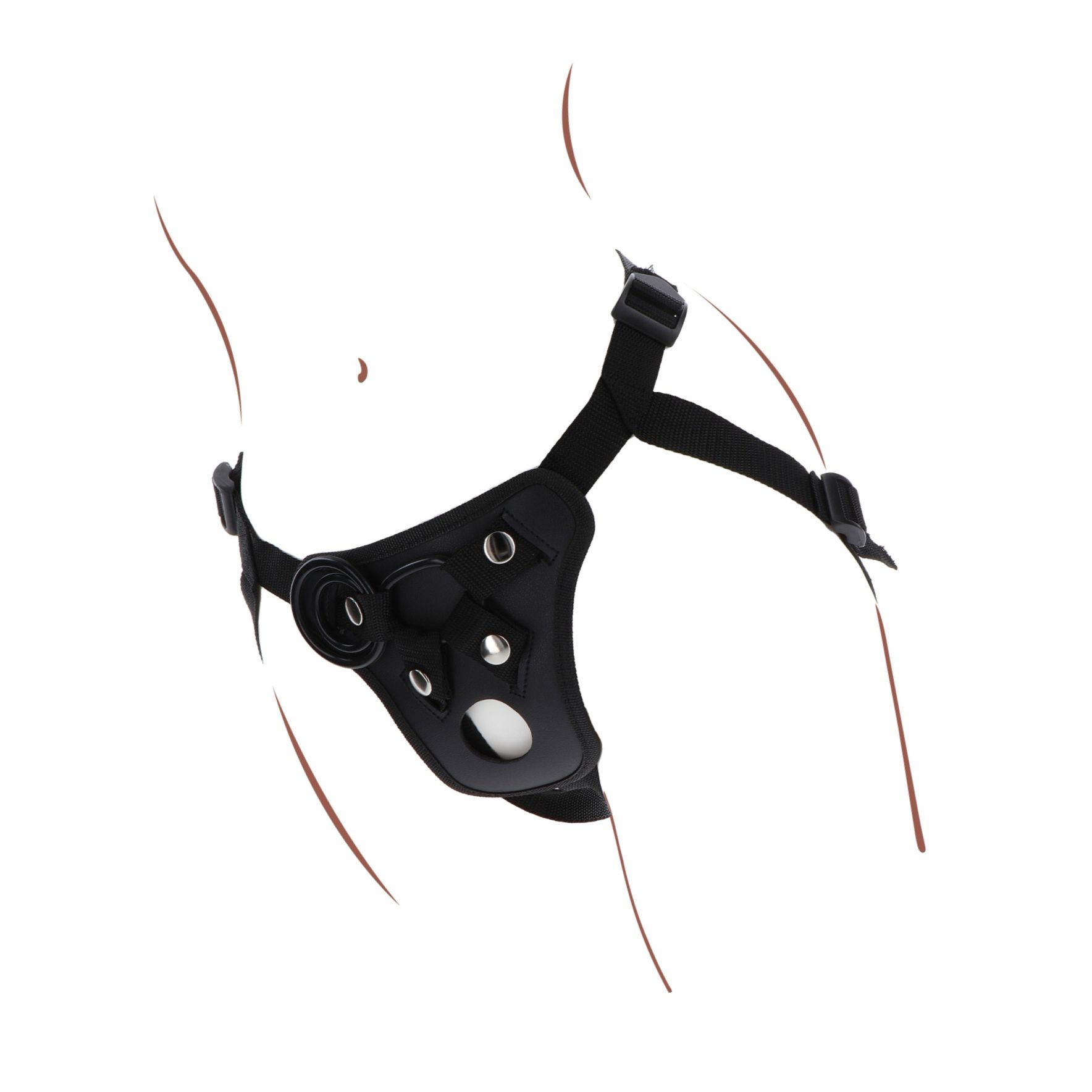 Setul include 3 inele din silicon (Ø 3.5, 4.5, 5 cm) pentru a permite utilizarea diferitelor dildo-uri preferate. Se află un buzunar discret pentru vibrator mic (neinclus) și o deschidere strategică menită să amplifice contactul și stârnirea pentru ambii parteneri.