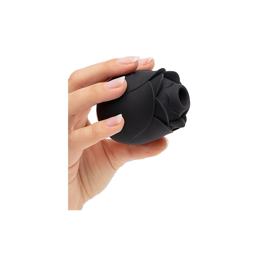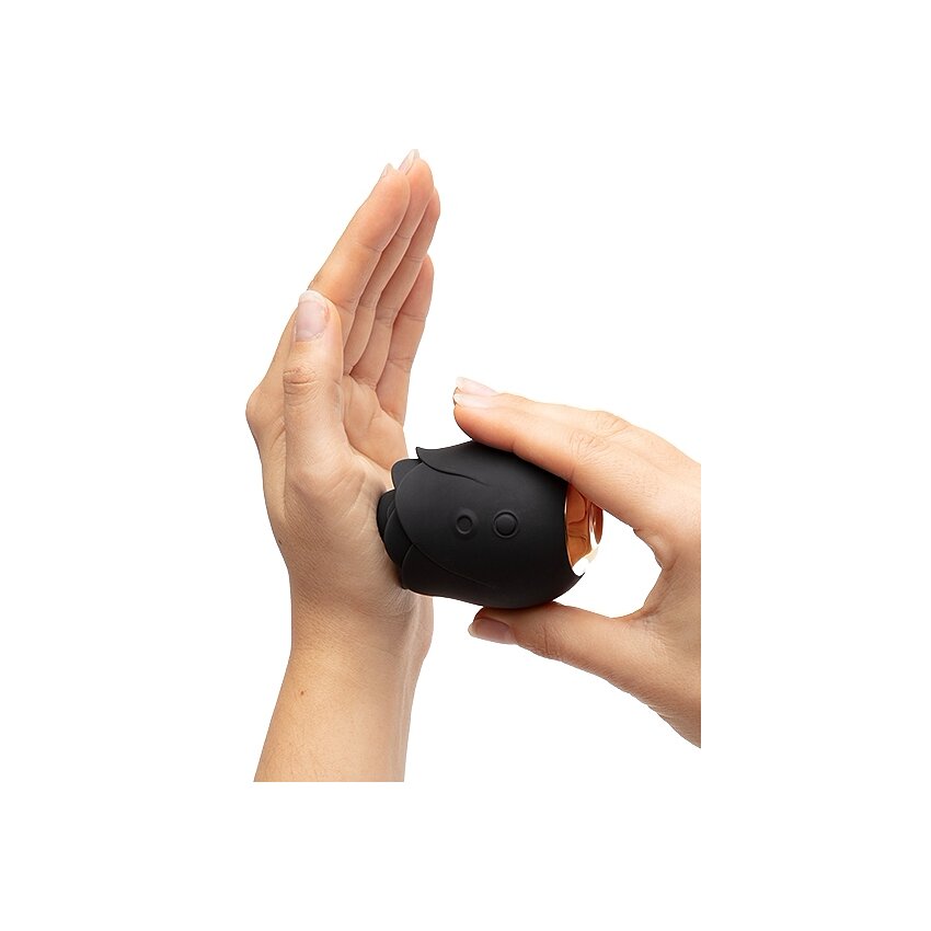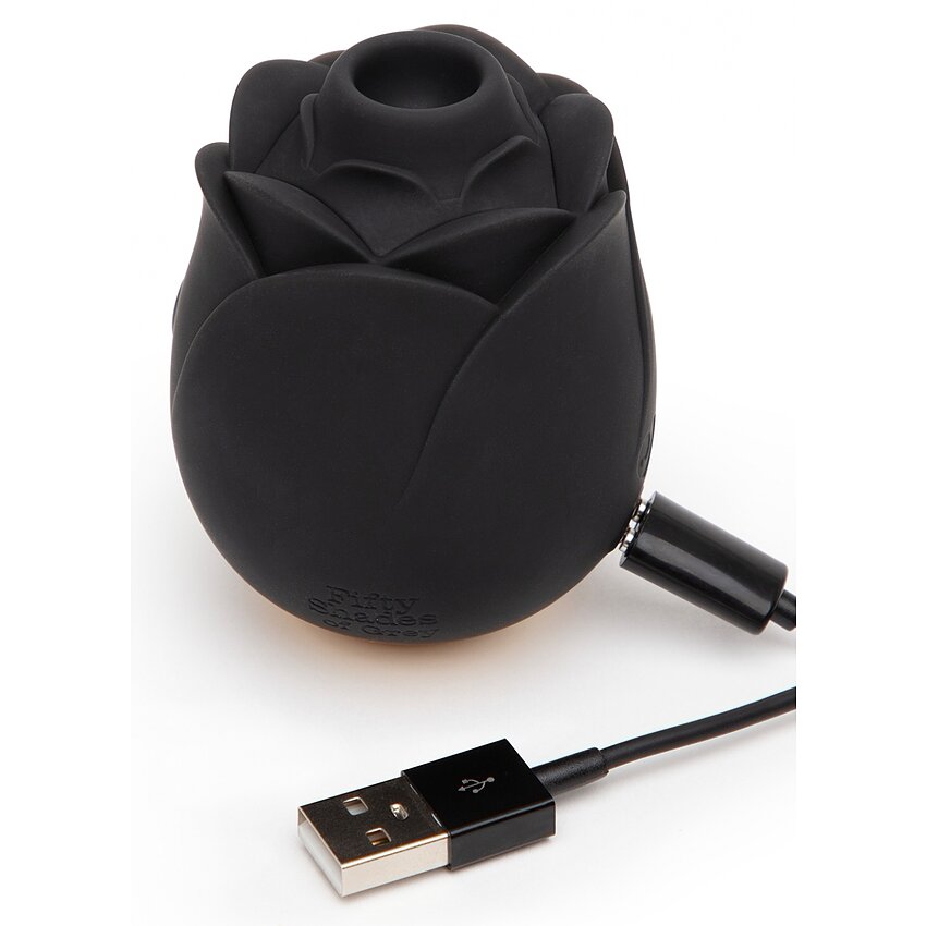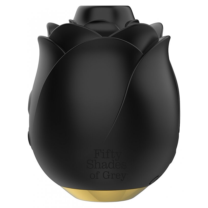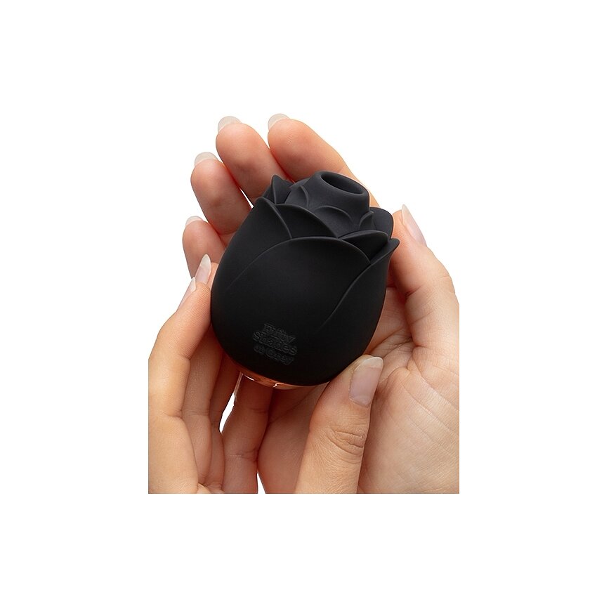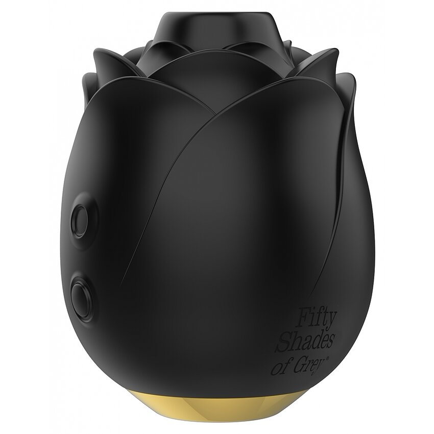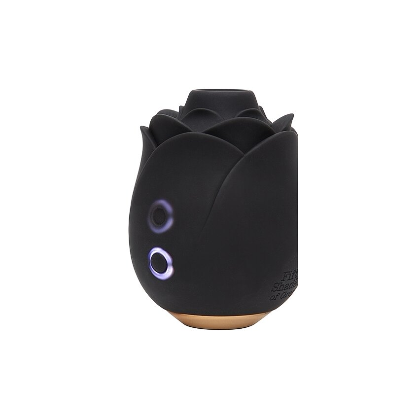 Stimulator clitoridian cu acumulator Fifty Shades of Grey Hearts Flowers. Tehnologie Plăcere Air pentru senzație de suctiune fără contact. 6 niveluri, 4 moduri, IPX7, autonomie 65 min. Silicon și ABS, design discret negru.