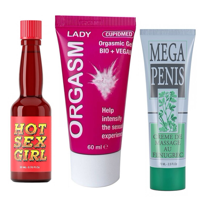 Set complet pentru cupluri care trezește dorința și intensifică senzațiile. Gelul amplifică sensibilitatea feminină, picăturile sporesc umezeala și excitarea, iar crema îmbunătățește fermitatea și siguranța masculină — folosiți-le în preludiu și cândva de act.
