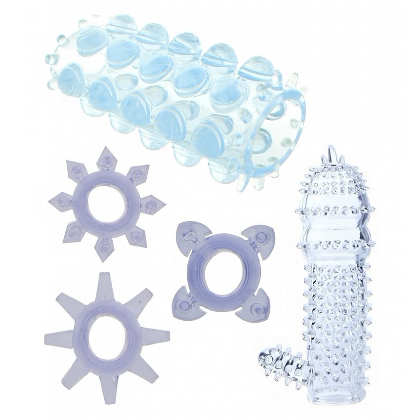 Redescoperiți intimitatea cu un set construit pentru control, confort și emoții amplificate. Articolele din acest colet se completează: inelele stabilizează erecția și amână ejacularea, iar manșoanele adaugă volum, textură și stârnire pentru parteneră.