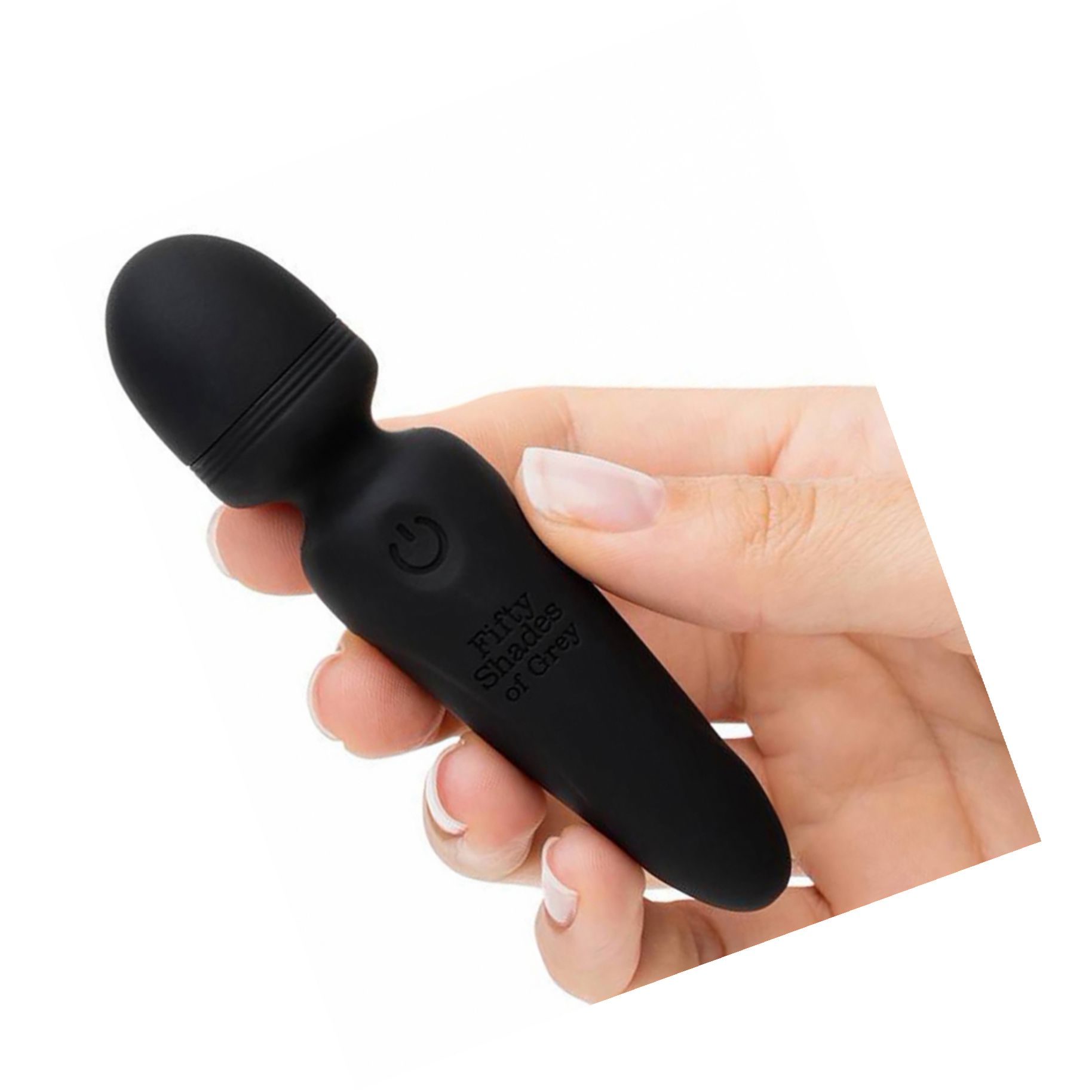 Mini Wand compact din colecția Fifty Shades Of Grey: corp din silicon fin, cap rotund ferm și 20 chipuri de vibrație. Reîncărcabil USB, autonomie aprox. 80 minute, husă din plastic reciclat. Potrivit pentru uz extern; epurați și folosiți material lubrifiere pe bază de apă.