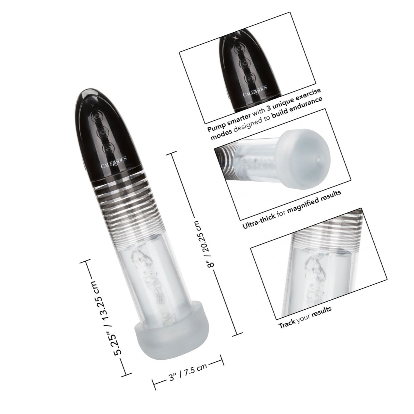Pompa automată CalExotics Optimum este un mecanism reîncărcabil, proiectat pentru putere, precizie și întrebuințare facilă. Controlul ușor și butonul de eliberare rapidă permit sesiuni sigure, iar cilindrul rezistent are marcaje pentru a urmări progresul.