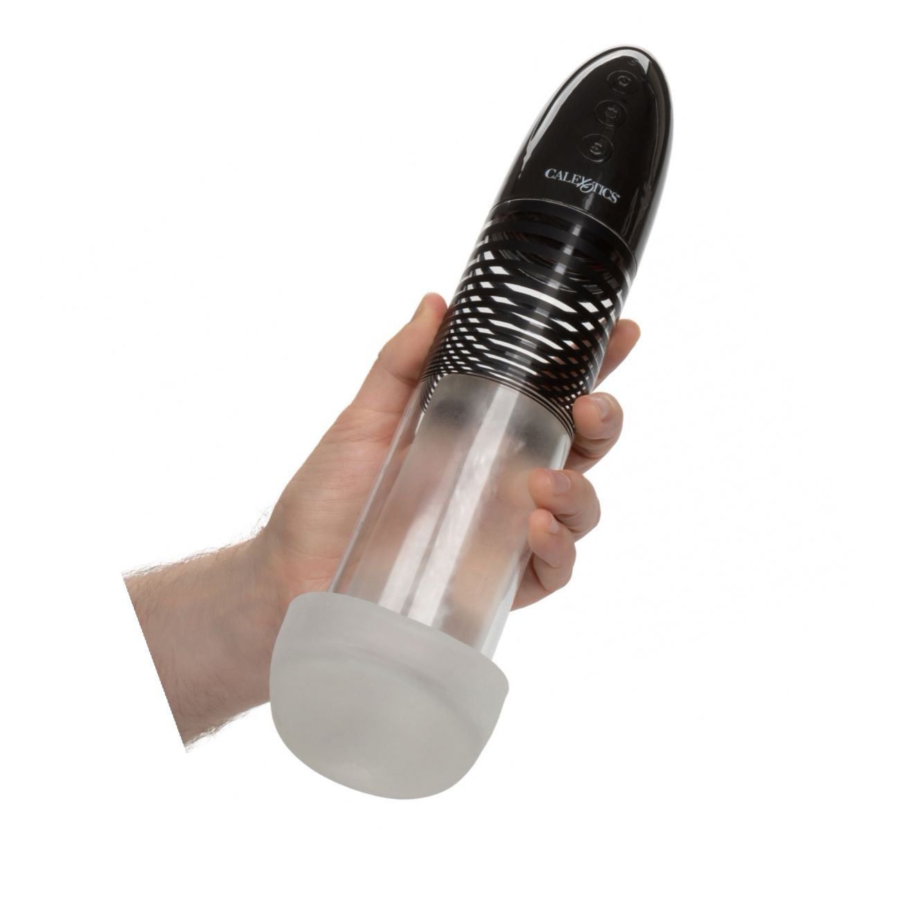 Pompa automată reîncărcabilă CalExotics Optimum, cu 3 feluri de vibraţie, buton de eliberare grabnică şi mâneca TPR sigură pentru corp. Conține acumulator Li‑ion, marcaje de măsurare şi până la 80 minute de funcţionare după încărcare.