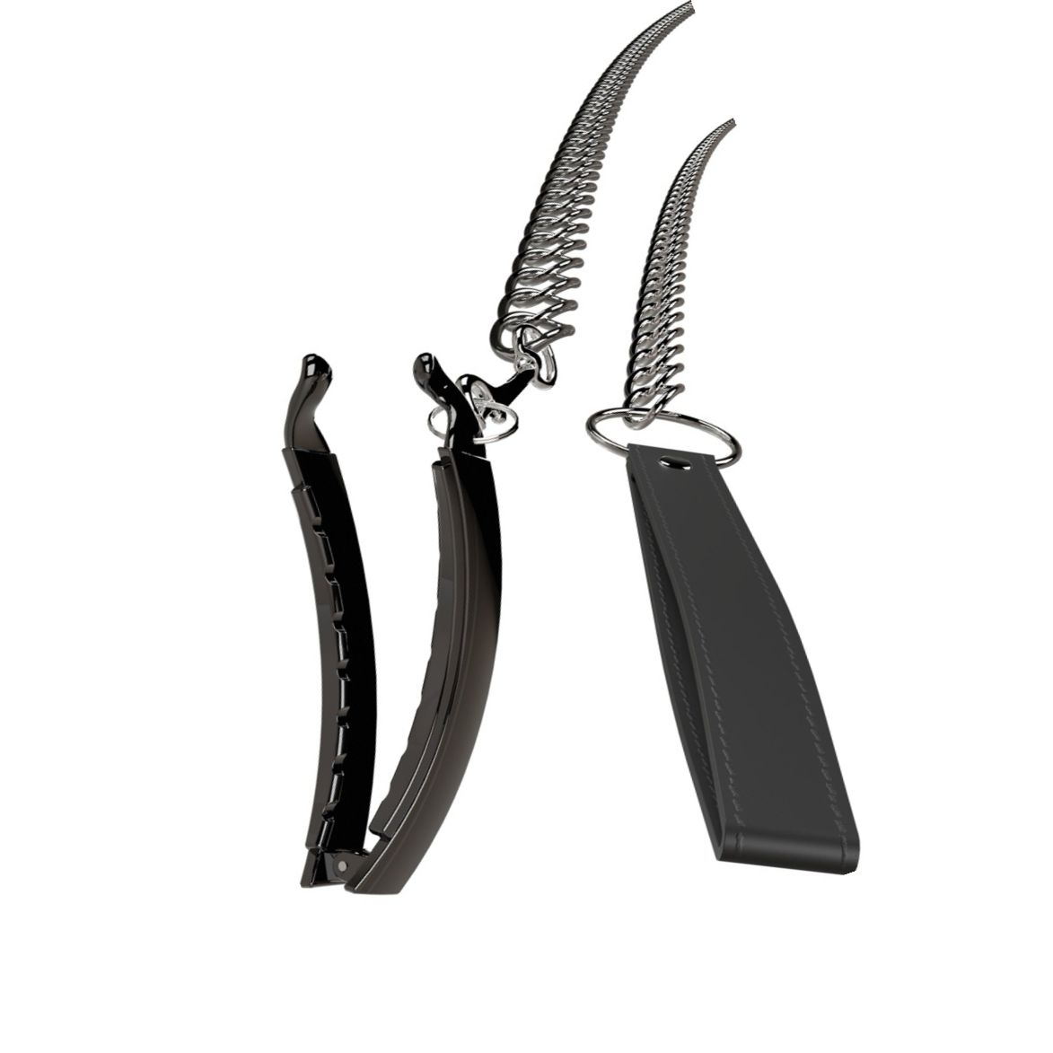 Lesa metalică lungă se atașează fără întârziere la inelul clemei printr-un cârlig snap și poate fi detașată pentru flexibilitate în utilizare. Lungime lesa: 85.5 cm; cingătoare de încheietură: 16.4 cm. Mânerul din imitație de piele dăruiește control suplimentar în momentul manevrării.