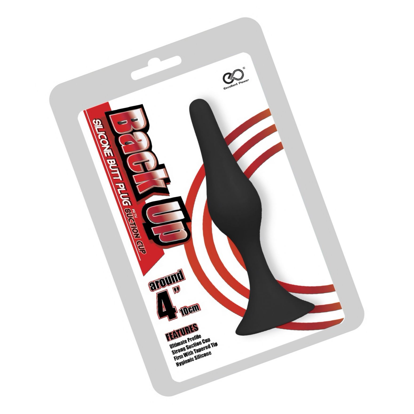 Plug anal NMC Back Up 4, din silicon moale, vârf conic și corp ușor bulbous pentru inserție confortabilă. Gât subțire pentru prindere sigură și bază flared cu ventuză pentru fixare hands-free. Viguros la apă, ușor de curățat.