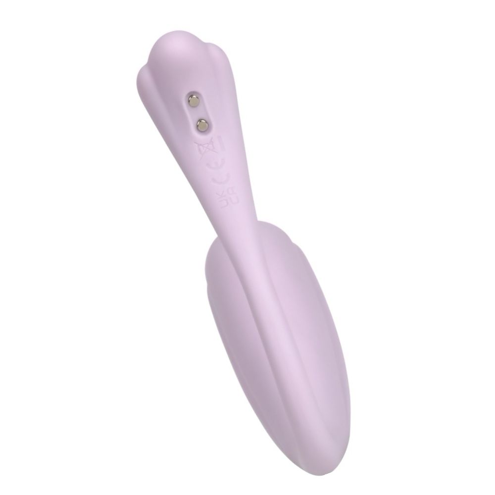 Beneficii și atribute - 2 motoare pentru stimulare simultană - 11 moduri de vibraţie (intensităţi suplimentare disponibile în aplicaţie) - LED reglabil și opribil din aplicație - Control prin aplicație Bluetooth și control la distanță global - Cu acumulator și robust la apă - Design ergonomic, compact și silențios - Conține cablu USB și pouch pentru transport