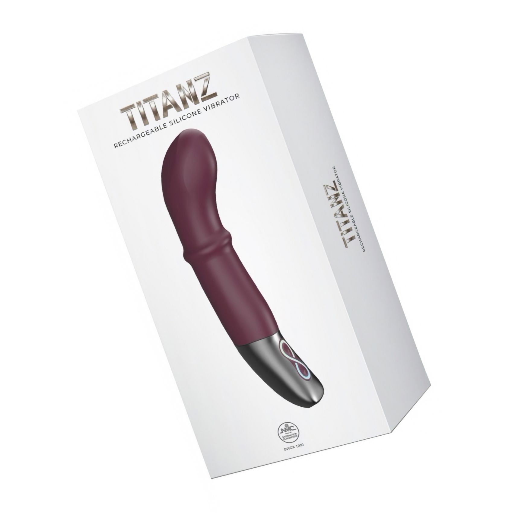 Titanz de la NMC este un vibrator reîncărcabil, proiectat pentru stimulare țintită a punctului G și control precis. Capul din silicon de excepție are o ușoară textură pentru senzații agreabile la penetrarea ușoară, iar mânerul metalic oferă stabilitate și prindere sigură.