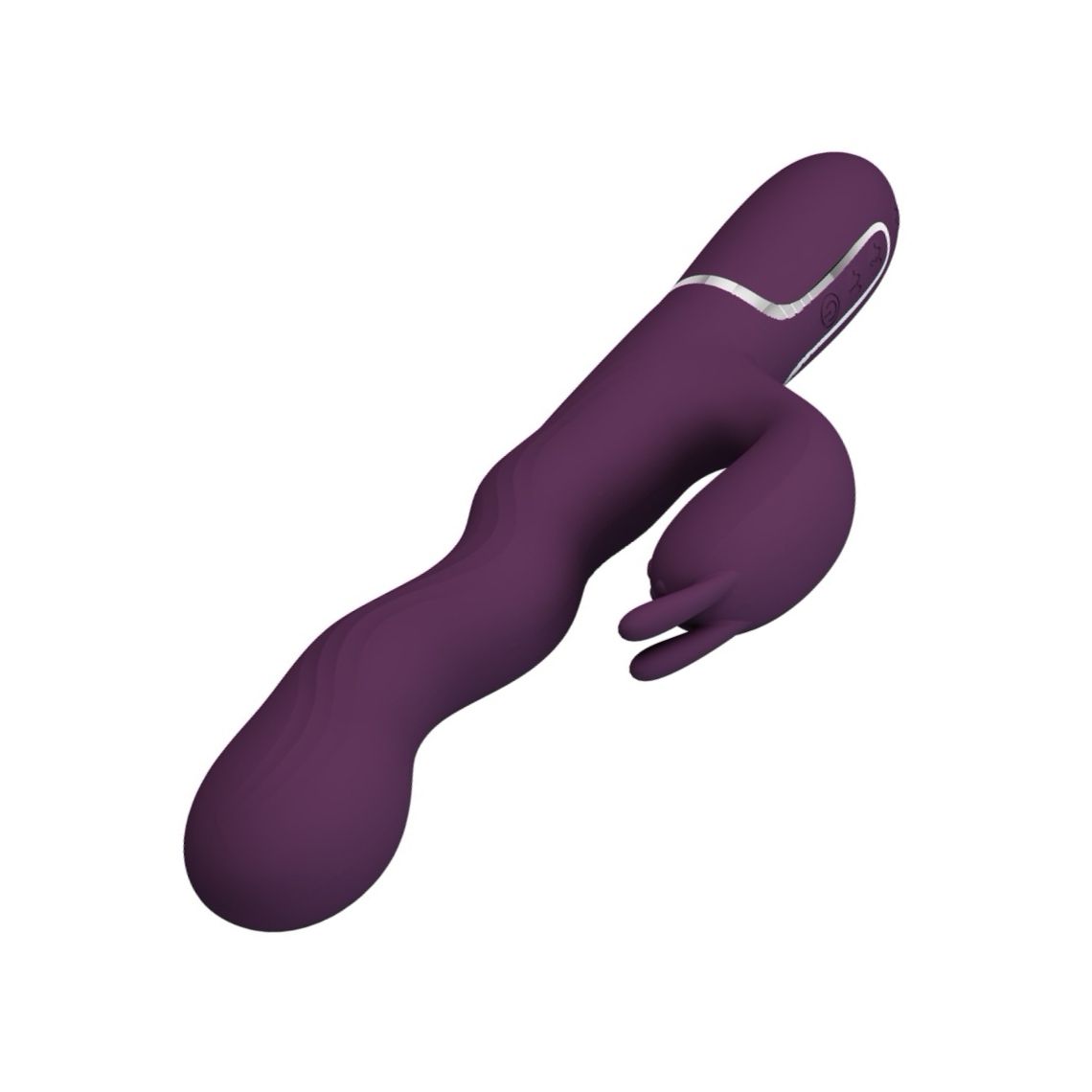 Vibrator Pretty Love Laursen Purple II, din silicon medical, curbat pentru stimulare punct G și clitoris. Reîncărcabil, încărcare magnetică, 7 feluri de vibrație + 4 chipuri de undă și buton de boost pentru intensitate maximă.