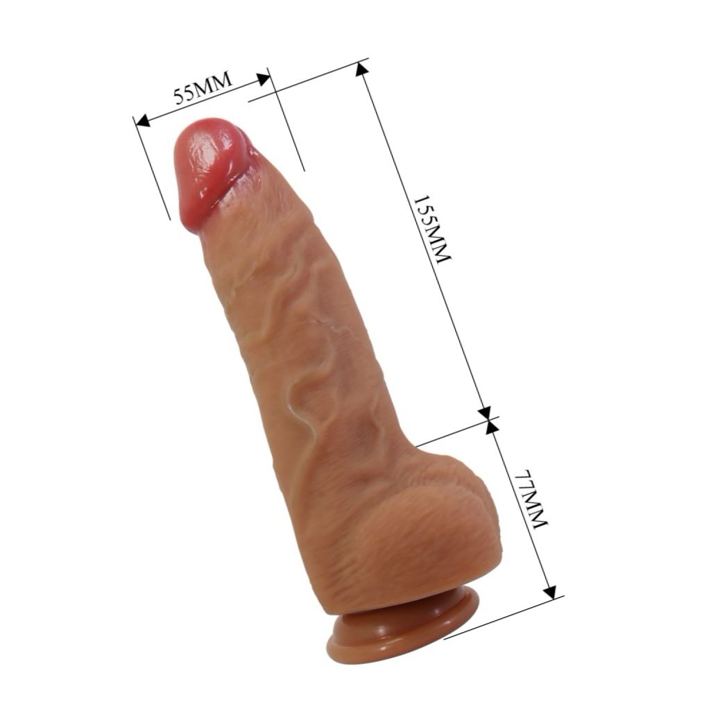 Beneficii și atribute: - Material: silicon catifelat, ușor de întreținut - Expresie realistă: cap pronunțat și ax venos pentru senzații naturale - Bază cu ventuză: fixare stabilă, compatibilă cu hamuri - Rezistent la apă: potrivit pentru utilizare și curățare rapidă - Se curăță necomplicat cu apă caldă și soluție pentru jucării