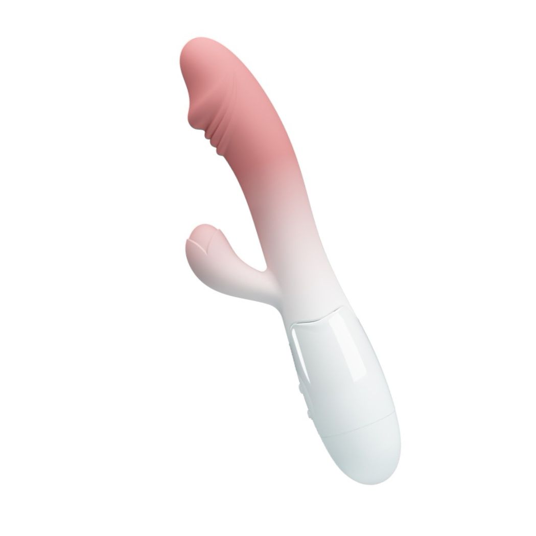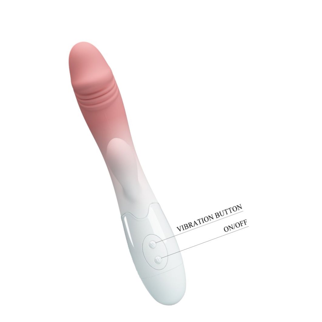 Vibrator rabbit Pretty Love Snappy, compact şi ergonomic, cu 30 moduri de vibraţie pentru stimulare duală clitoridiană şi vaginală. Suprafaţă din silicon fin, uşor de curăţat. Alimentare cu 2 baterii AAA.