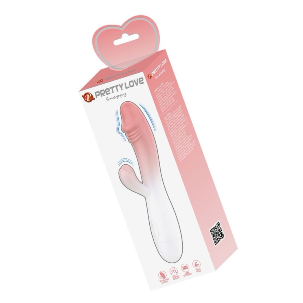 Pretty Love Snappy este un vibrator rabbit compact şi ergonomic, proiectat pentru stârnire duală de clitoris şi vaginală. Cu 30 chipuri de vibraţie, îngăduie ajustări fine pentru ritm şi intensitate.