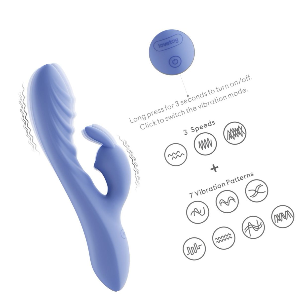 Beneficii și atribute concrete: - Brand: Lovetoy - Material: silicon - 3 trepte de intensitate și 7 chipuri de vibrație - Reîncărcabil USB - Complet etanș / viguros la apă - Până la 90 minute de utilizare continuă - Design ergonomic, finisaj neted, ușor de curățat și discret