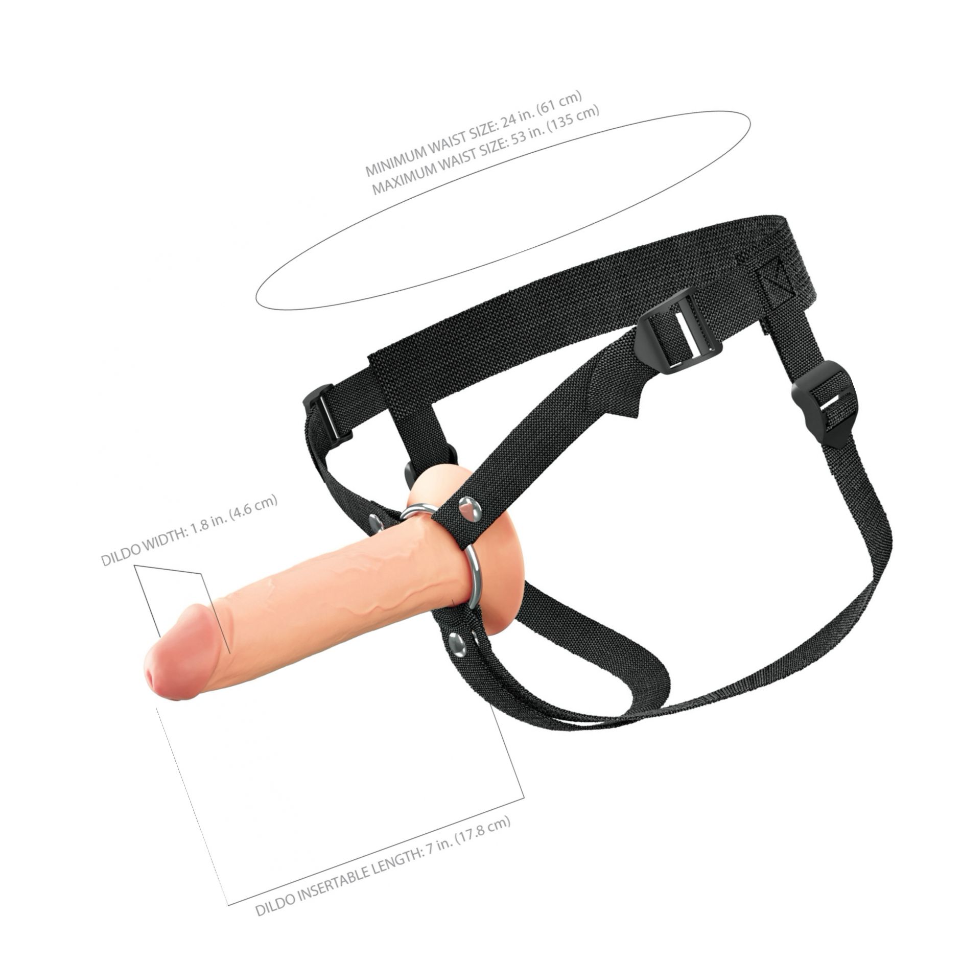 Beneficii și atribute: - Material exterior: silicon Dual Density, partea interioară ferm pentru susținere - Lungime totală manson: 19.1 cm; adâncime inserție: 17.8 cm - Diametru exterior: 4.5 cm; diametru interior: 3.2 cm - Manson gol, permite extindere și adaptare fără constrângeri - Bază mare, rotundă și flexibilă pentru confort prelungit - Ham reglabil: talie 61–135 cm, coapse 35.6–121.9 cm; inel metalic pentru fixare - Materiale: silicon, ABS, metal, nylon Pentru a încerca placeri mai intense si o alunecare mai simpla ar fi de preferat achizitionarea unui lubrifiant. Dezinfectati produsul Extensor Strap-on Fantasy X-tensions Elite 19 cm Naturală atat inainte cat si dupa utilizare cu una din solutiile excepționale de igiena pentru astfel de produse.