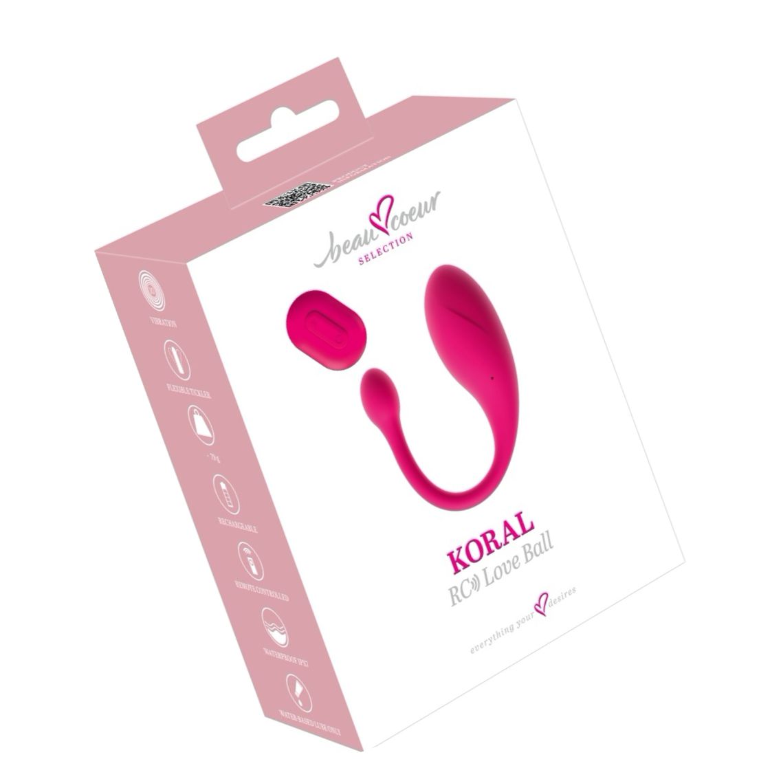 Bilă reîncărcabilă beau coeur KORAL RC: silicon catifelat, 10 moduri de vibraţie, tele-comandă (8 m), rezistentă la apă. Silenţioasă, pentru stârnire internă şi antrenament pelvian.