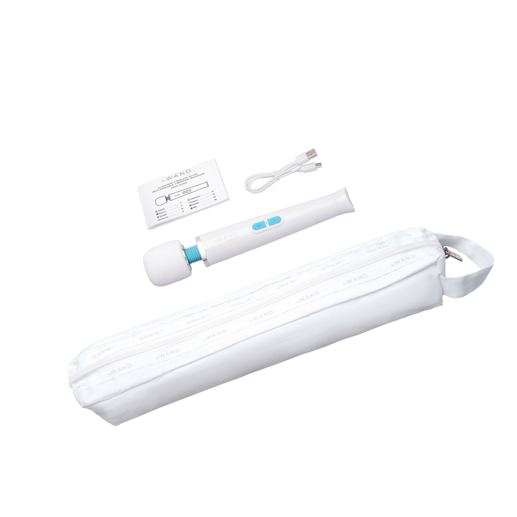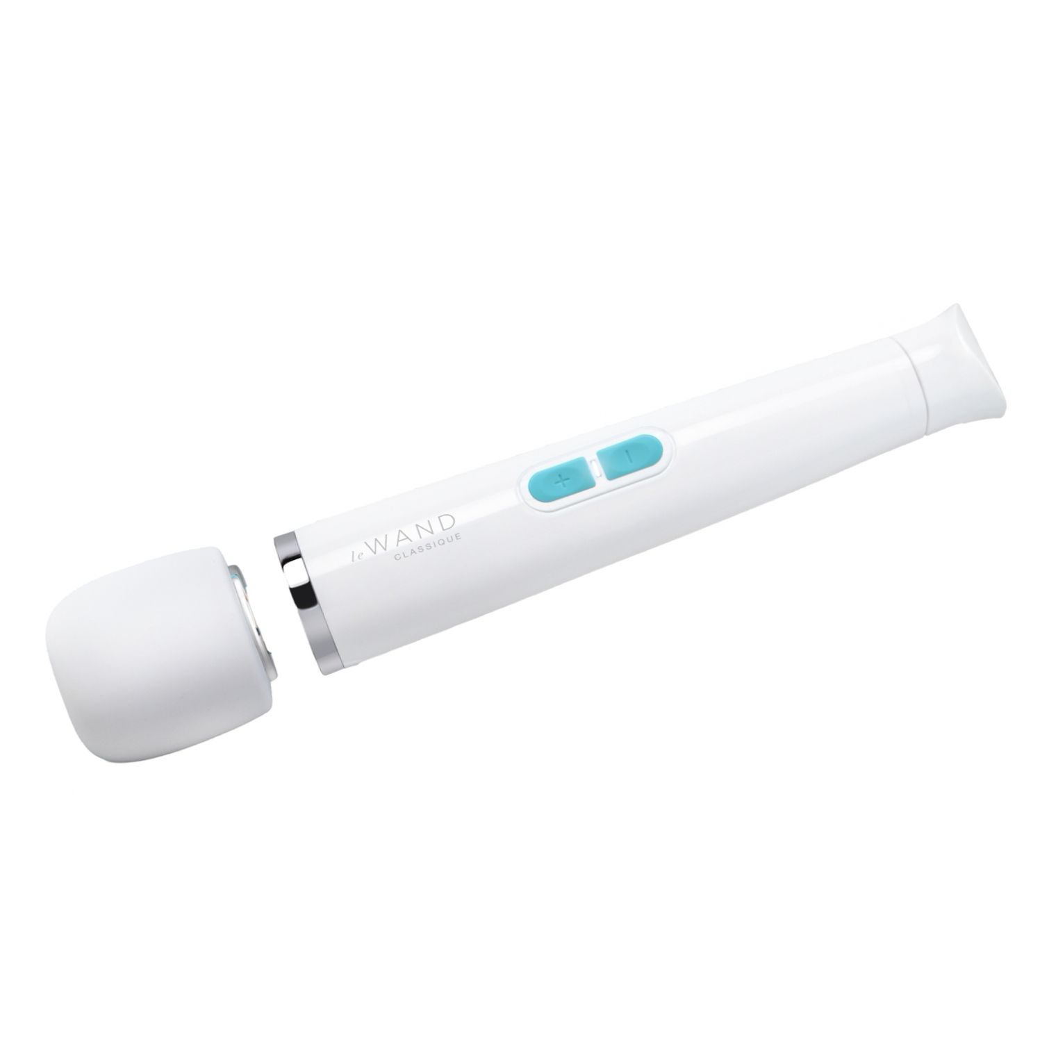 Le WAND Classique Petite — wand reîncărcabil, compact și puternic, cu 10 nivele de vibrație, motor până la 6.500 RPM, cap din silicon body-safe Ø4.8 cm, IPX7, travel lock și autonomie ~2 ore. Grozav pentru uz acasă sau în deplasare.