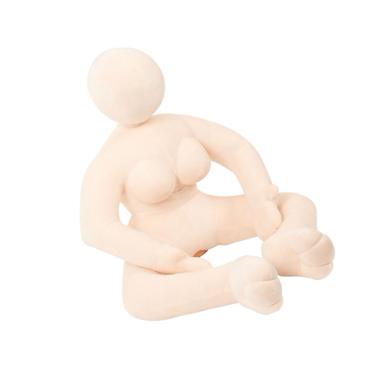 Păpușa Leona Plush, în poziție șezând (70 cm), îmbină acoperire din velur pufos cu umplutură fermă pentru a păstra forma și a oferi stabilitate. Silueta este suplă, cu cap rotund, bust modelat și mâini și picioare minimaliste. Brațele și picioarele ușor îndoite permit ajustări simple pentru poziționare confortabilă.