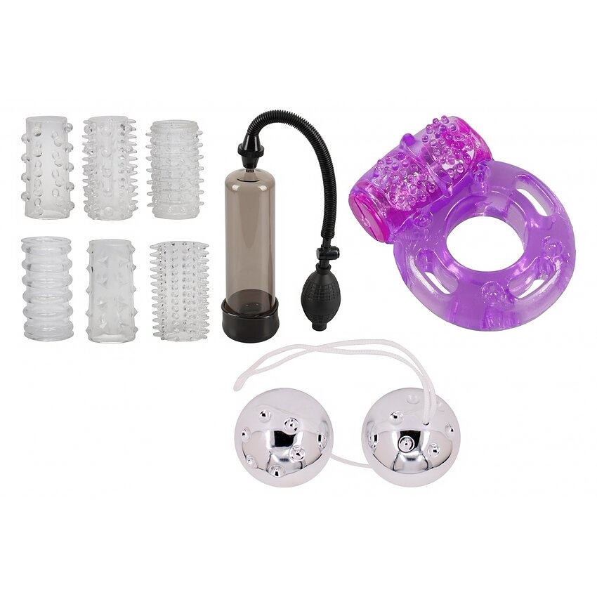 Set perfect pentru încredere și emoții sporite: antrenează, tonifică și amplifică actul intim. Pompă pentru volum, bile pentru tonus pelvin, inel vibrator pentru sprijinire și manșoane texturate pentru variație — utilizate laolaltă cresc controlul și plăcerea.