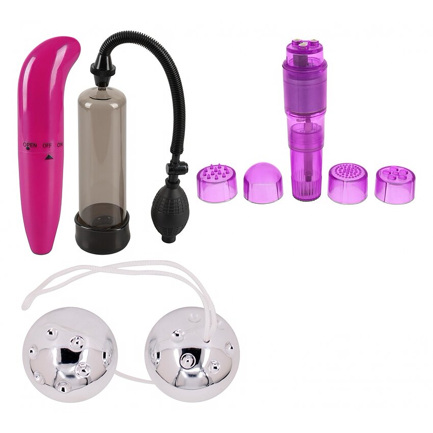 Kit complet pentru performanță, senzualitate și control. Pompă pentru antrenament și erecție, bile Kegel pentru tonus pelvic şi orgasme mai intense, vibrator punct G și pocket rocket pentru stimulare precisă — utilizate laolaltă crește satisfacția și încrederea.