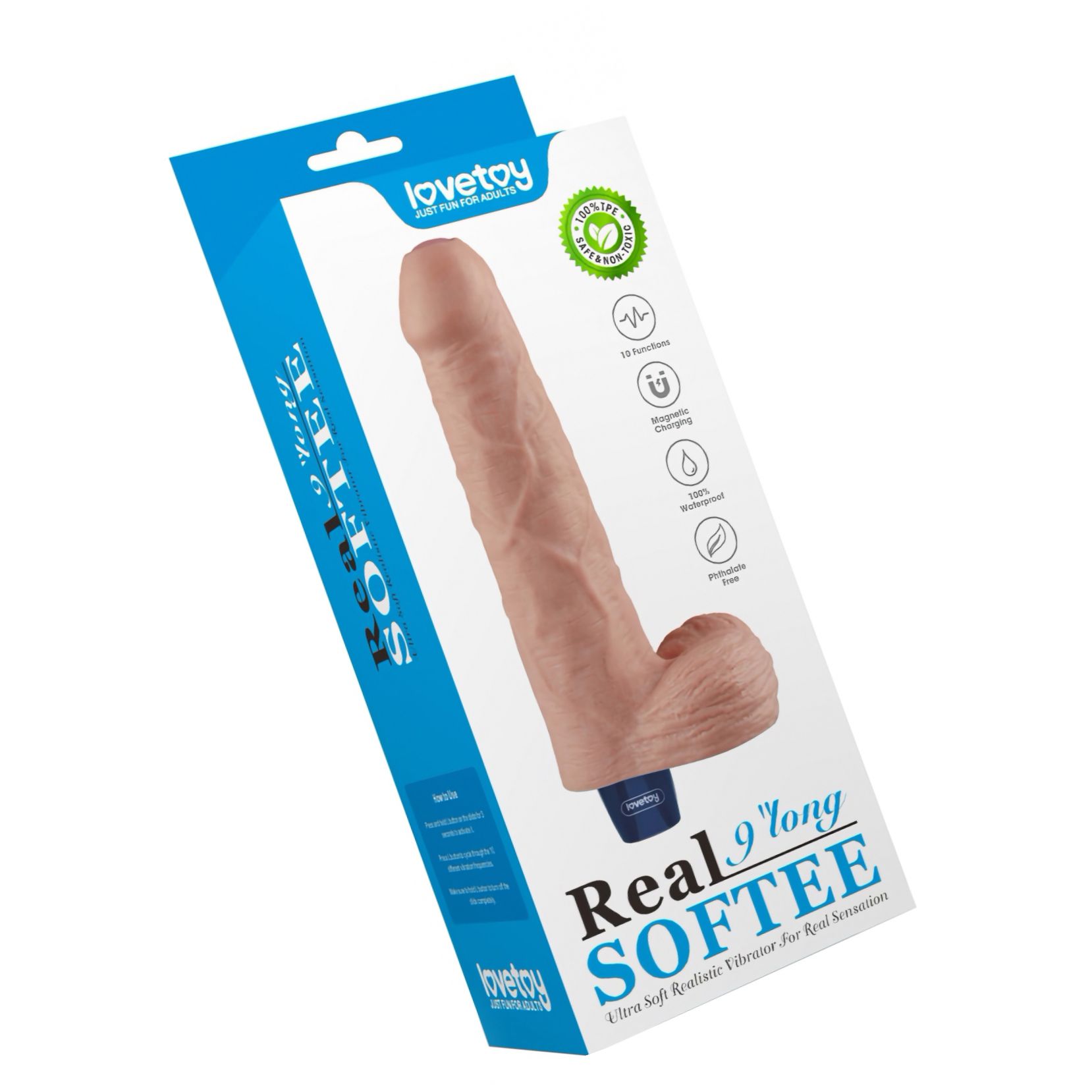 Lovetoy Real Softee: design realist cu ax neted și cap profilat. 10 maniere de vibrație, motor silențios, 100% impermeabil și reîncărcabil. Exploatare discretă și spălare ușoară.