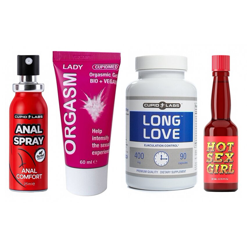 Detalii esențiale: - Pastile Long Love (90 capsule, Cupid Labs): procedeu pe bază de componente naturale, concepută pentru a susține controlul și pentru a reduce presiunea legată de performanță. Administrare practică, conform prospectului. - Spray desensibilizator anal (25 ml, Cupid Labs): acțiune rapidă, aplicare externă; augmentează confortul în timpul penetrărilor anale și facilitează la relaxarea zonei. Corespunzător pentru cei care vor să descopere această variantă cu mai multă siguranță. - Gel Orgasm Lady (60 ml, Cupid Labs): hipoalergenic, fără parfum, oferă senzații de încălzire și creștere a sensibilității zonelor intime externe; ideal în preludiu și pentru intensificarea clipei. - Afrodiziac Extaz (20 ml, Ruf): picături care pot prinde dispoziția de excitare și umezeala naturală; utilizate diluate conform instrucțiunilor, pot amplifica conexiunea emoțională și apetitul erotic.