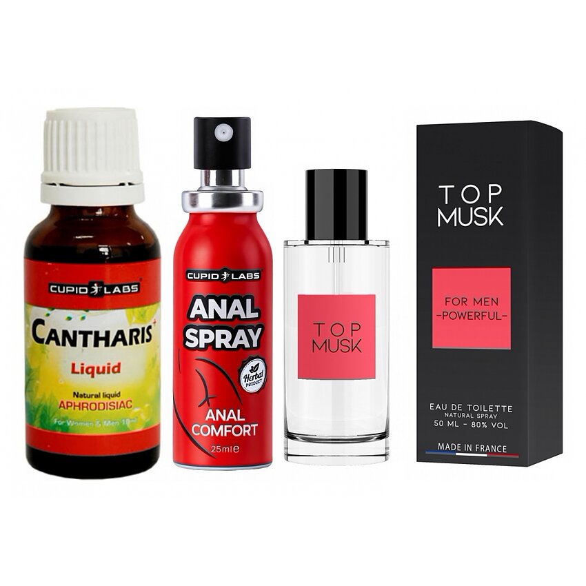 Cum să le folosiţi împreună: administraţi Picăturile Cantharis cu cam 30 de minute premergător întâlnirii (10–15 picături într-un lichid sau sub limbă) pentru a amplifica forța şi apetitul sexual. Pulverizaţi Esenţa de Hormoni de atracție cu mireasmă de mosc pe punctele pulsatil–mane (gât, încheieturi, piept) cu puţin timp cândva de a intra în atingere pentru a spori atracţia. Sprayul desensibilizator anal se aplică local, conform instrucţiunilor de pe flacon, repede înaintea activităţii pentru a relaxa zona şi a facilita o penetrare mai confortabilă. Utilizate în acest ordine, articolele transformă preludiul într-un crescendo controlat al plăcerii.