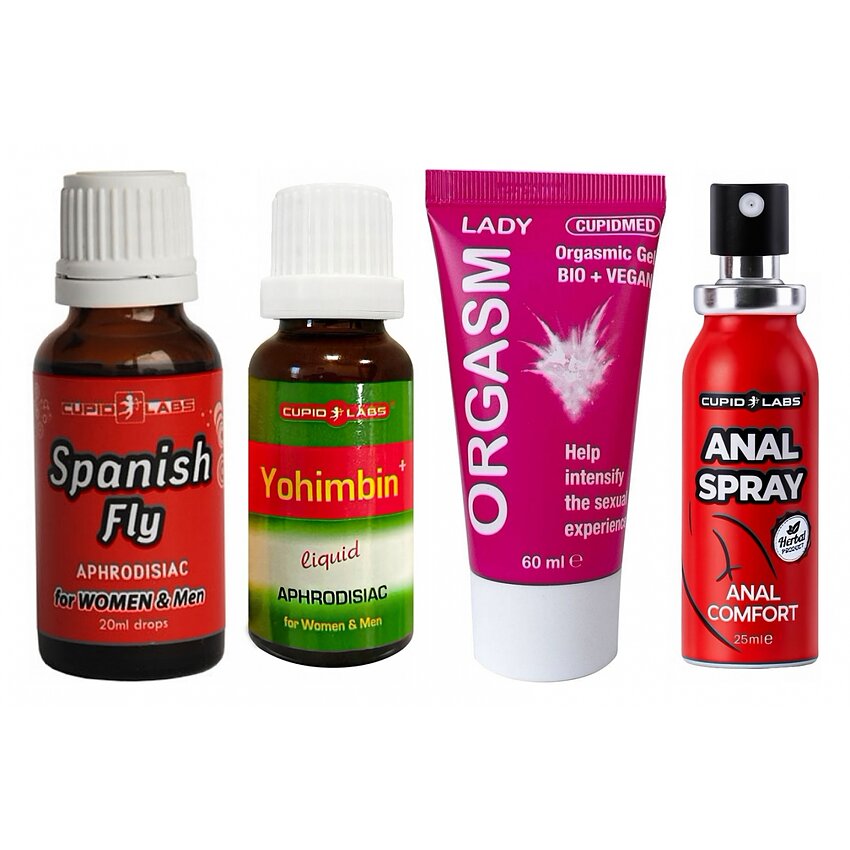 Ce asigură fiecare produs - Picăturile Spanish Fly 20 ml: un afrodisiac pe bază de plante, adresat să trezească dorinţa şi să accentueze senzaţiile. Se integrează uşor în ritualul premergător actului intim. - Yohimbin Drops 20 ml: extract normal care ajută vitalitatea şi poate susţine o stare de vigilenţă sexuală mai bună; prescris pentru clipe când doreşti susţinere auxiliară a performanţei. - Gel Orgasm Lady 60 ml: rețetă hipoalergenică, fără parfum puternic, care oferă senzaţii de căldură şi furnicături; corespunzător cu alte produse și conceput pentru luxul femelei în stimulare locală. - Atomizator Desensibilizator Anal Cupid Labs 25 ml: aplicare rapidă și precisă pentru relaxarea zonei, reducerea disconfortului și o penetrare mai blândă, permiţând explorări mai liniştite.