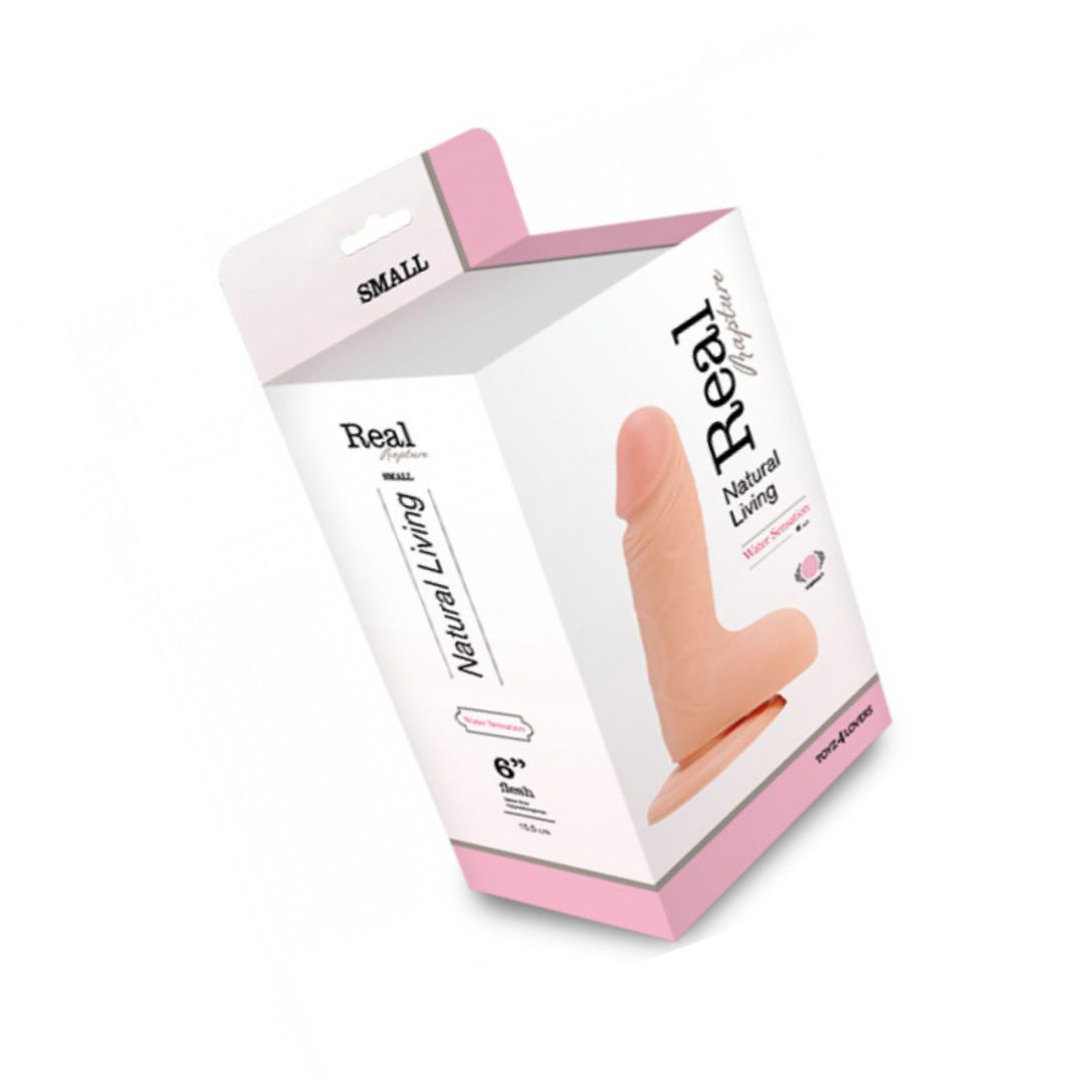 Vibratorul Real Rapture Flesh 6, de culoarea pielii, este elastic și prevăzut cu ventuză pentru a putea fi fixat pe orice suprafață. Este flexibil și moale la atingere, cu o formă ușor curbată pentru a permite o inserție mai bună.