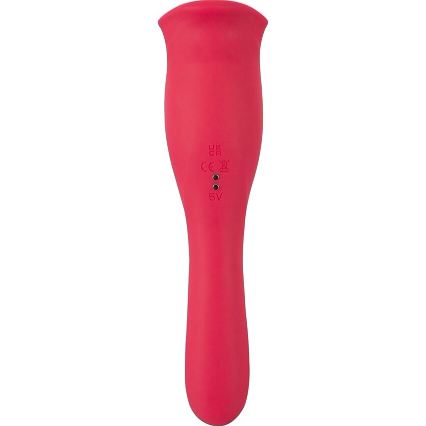 Beneficii și atribute: - Dublă stimulare: buze mobile + limbă vibratoare - 10 moduri pentru cap/limbă și 10 moduri pentru ax, control independent - Ax flexibil, întrebuințat și ca ansamblu de prindere ergonomic - Silicon neted la atingere; inserări din ABS/PU pentru structură - Cu acumulator USB, cablu inclus - Rezistent la apă — utilizare la baie/duș - Mărimi utile pentru orientare: lungime totală 22,2 cm, diametru 2,5–3,4 cm