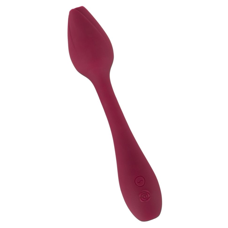 Vibrator Rosenrot Rose G Spot cu cap flexibil, 10 moduri de vibraţie, reîncărcabil USB şi viguros la apă. Suprafaţă moale din silicon, lungime nealterată 20 cm, diametru 4 cm. Estetică tip trandafir închis pentru stârnire precisă a punctului G şi clitorisului.
