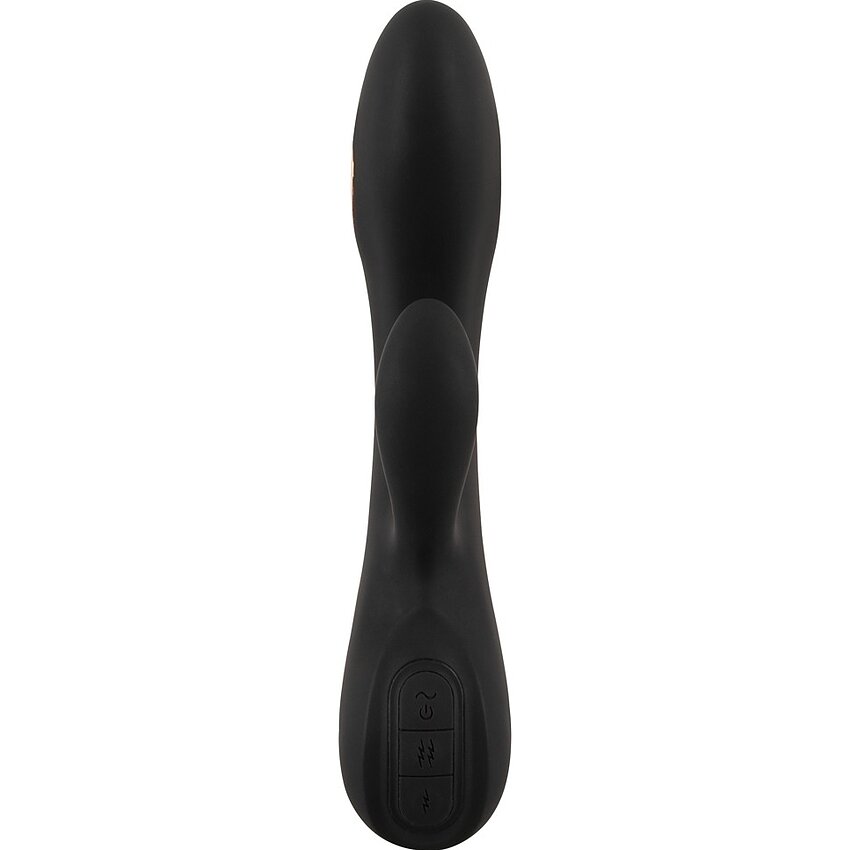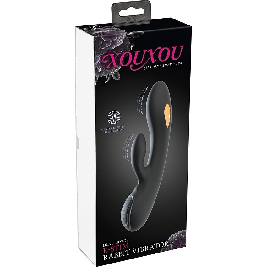 Stimulator iepure XOUXOU cu E-Stim și oscilații duale: 2 motoare, 10 feluri e-stim și 10 chipuri de vibrație. Silicon Soft-Touch, cu acumulator USB, zdravăn la apă. Mărime 20.5 cm, inserabil 11.5 cm.