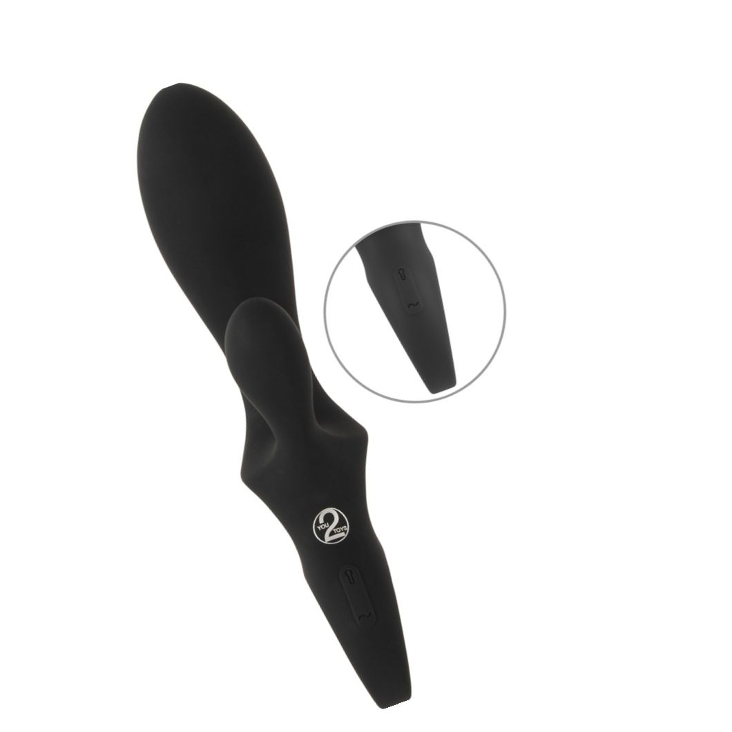 Cele trei motoare silențioase pun la dispoziție 10 chipuri de vibrație, aplicate pe vârf și pe stimulatorul clitoridian, programabile separat sau în combinații prin butonul ergonomic în variantă de inel. Textura Soft Touch facilitează inserția și asigură o glidare plăcută.