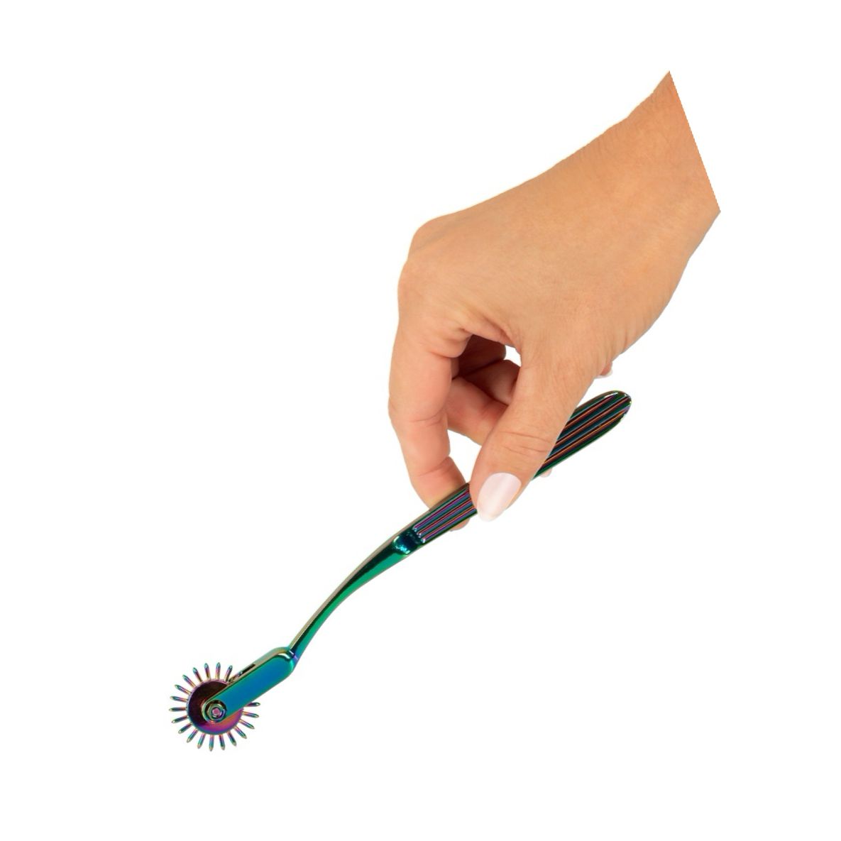 Roată pinwheel din metal, finisaj curcubeu, pentru control precis al intensităţii prin rulare pe piele. Ansamblu de prindere ergonomic, ace de 6 mm pentru senzaţii de la delicate la intense. Compactă şi uşor de întreţinut.