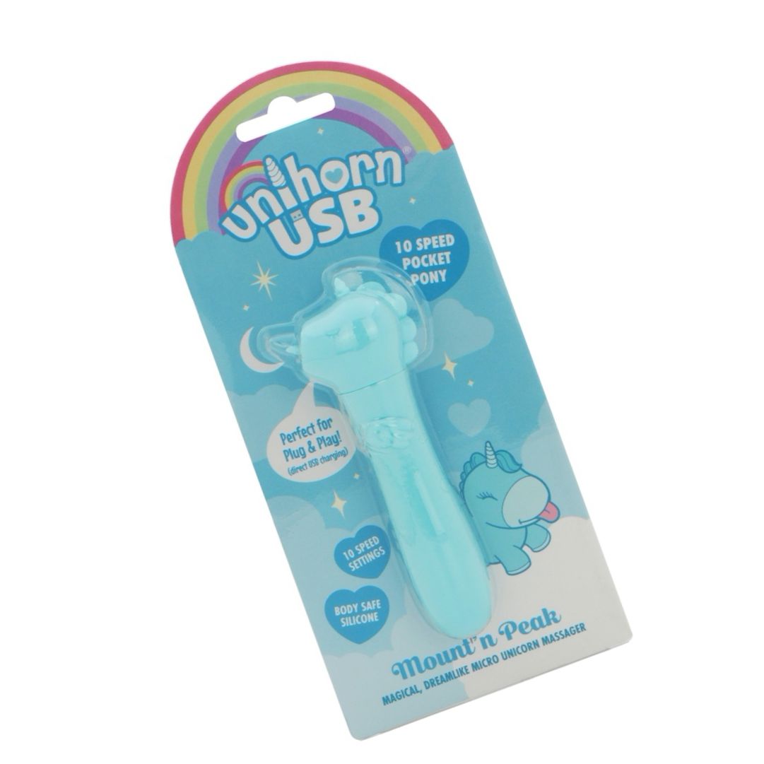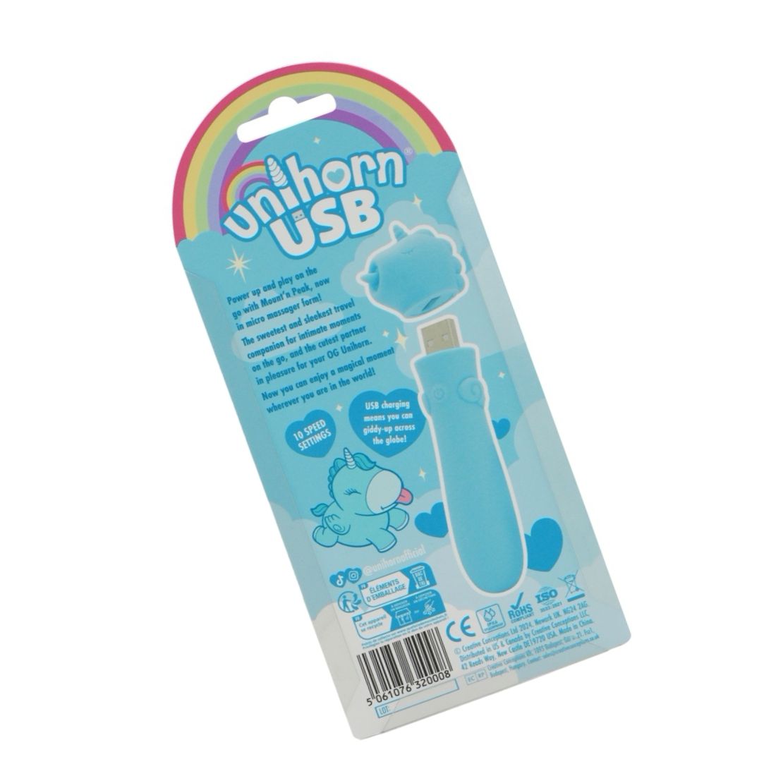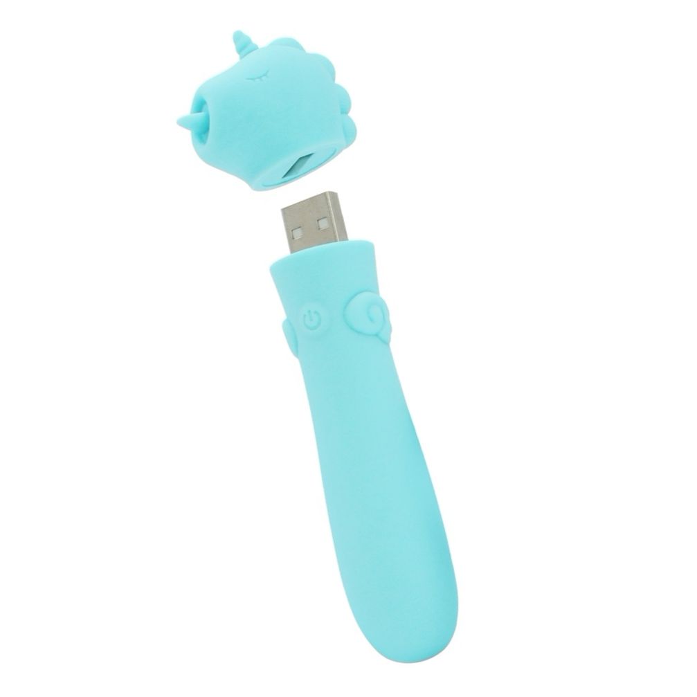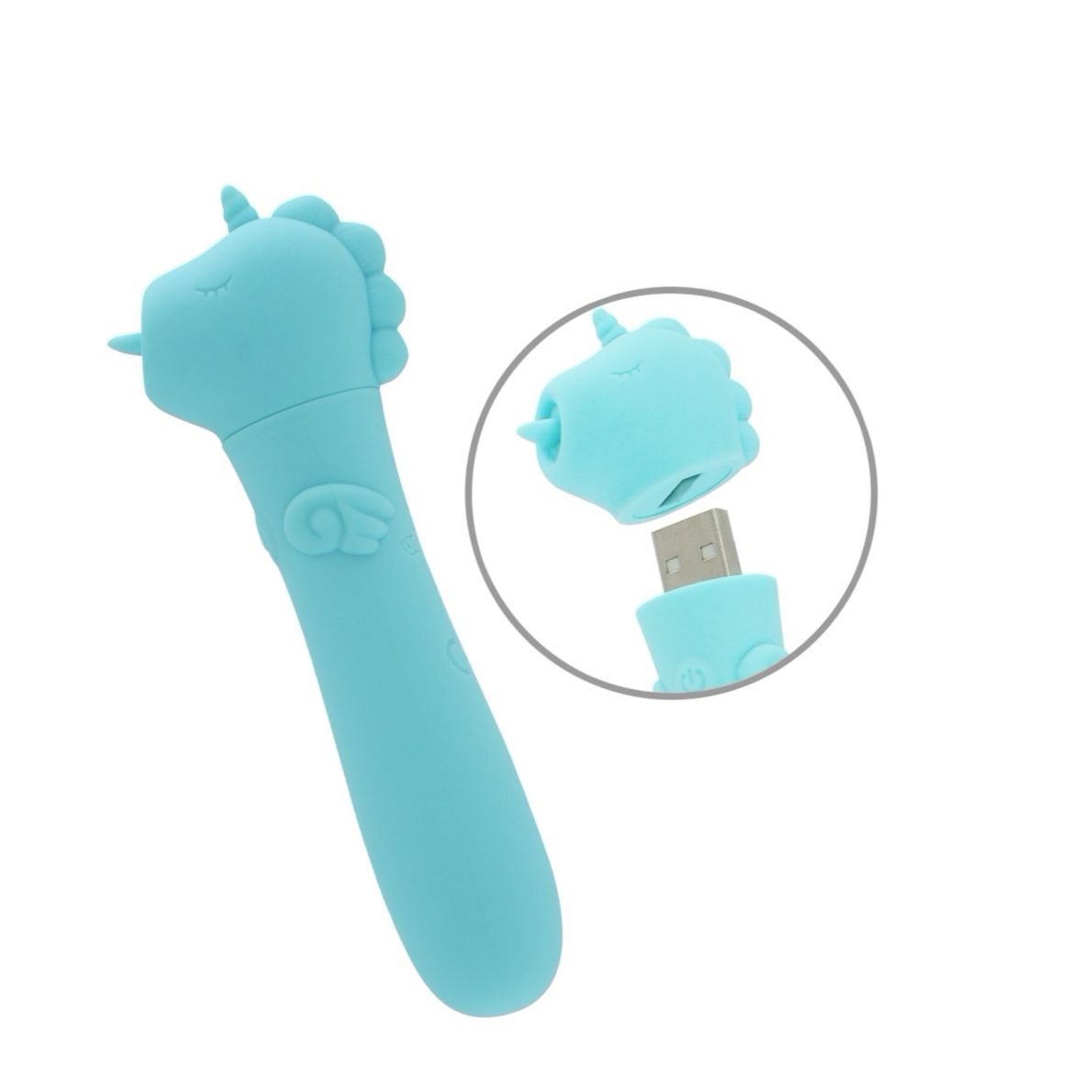 Mini stimulator Unihorn în expresie de unicorn: vibraţii puternice în 10 moduri, suprafaţă din silicon extra-moale, reîncărcabil prin USB şi rezistent la apă. Lungime deplină 14.3 cm, ideal pentru stimulare țintită.