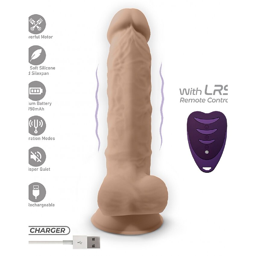 Silicon Silexpan, estetică realist, 10 moduri de vibrație comandate cu telecomanda. Reîncărcabil (cablu USB), până la 180 min autonomie. Ventuză intensă pentru montare hands-free, rezistent la apă. Lungime globală 20 cm, calibru 4.3 cm.