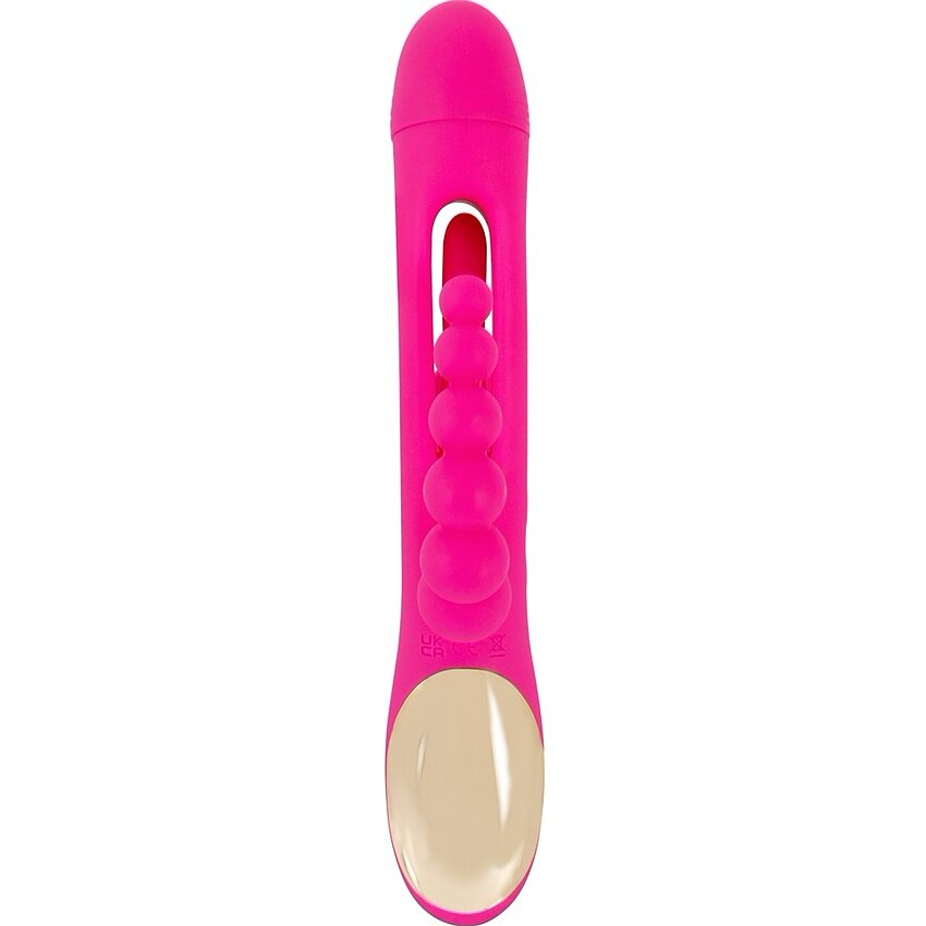 Triple Vibe Flicking de la Sweet Smile transmite stimulare triplă: interior, clitoris și zonă anală. Trei brațe cu 3 motoare silențioase, Flicking Tongue cu 7 viteze și 7 moduri, control separat, cu acumulator USB, silicon catifelat. Hands-free.