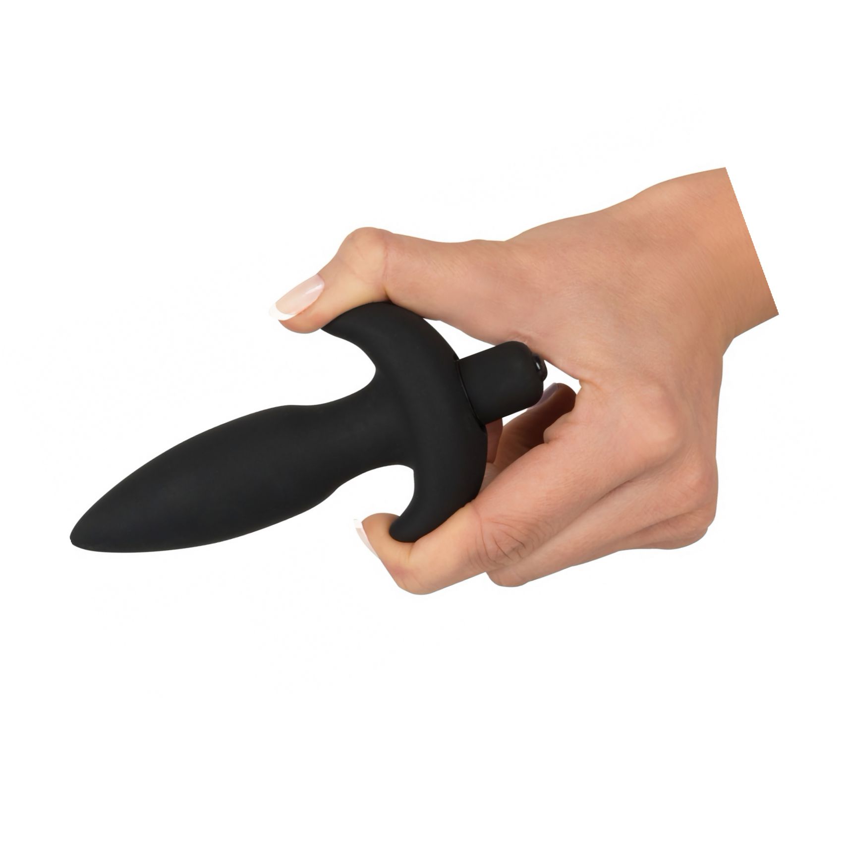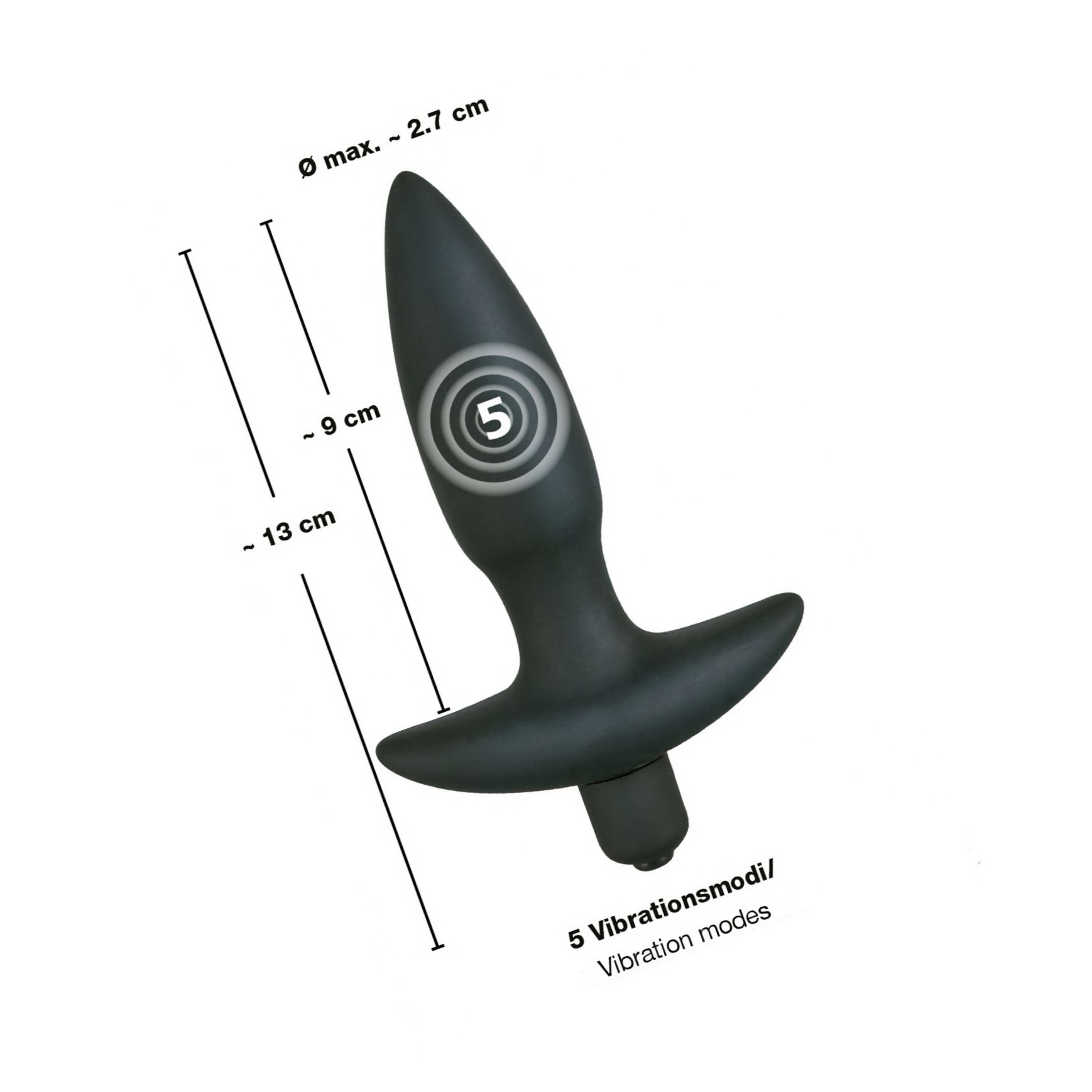 Plug anal mic You2Toys din silicon fără ftalați, 5 trepte de vibrație, destul de silențios, mâner retractabil. Extindere totală 13 cm, inserabil 9 cm. Alimentare 1 x AAA (nu este inclusă).