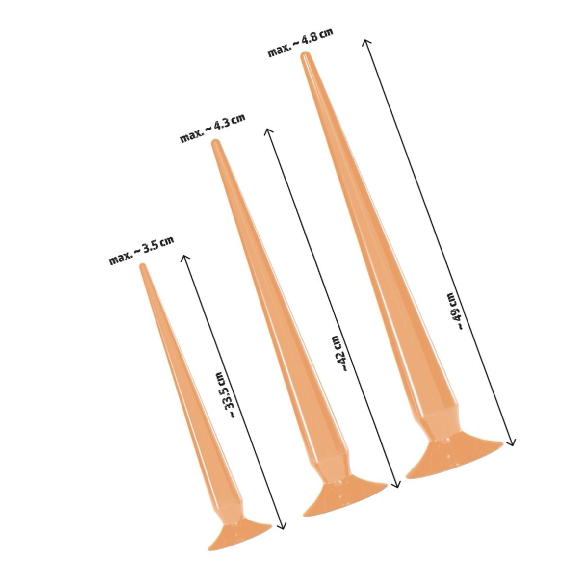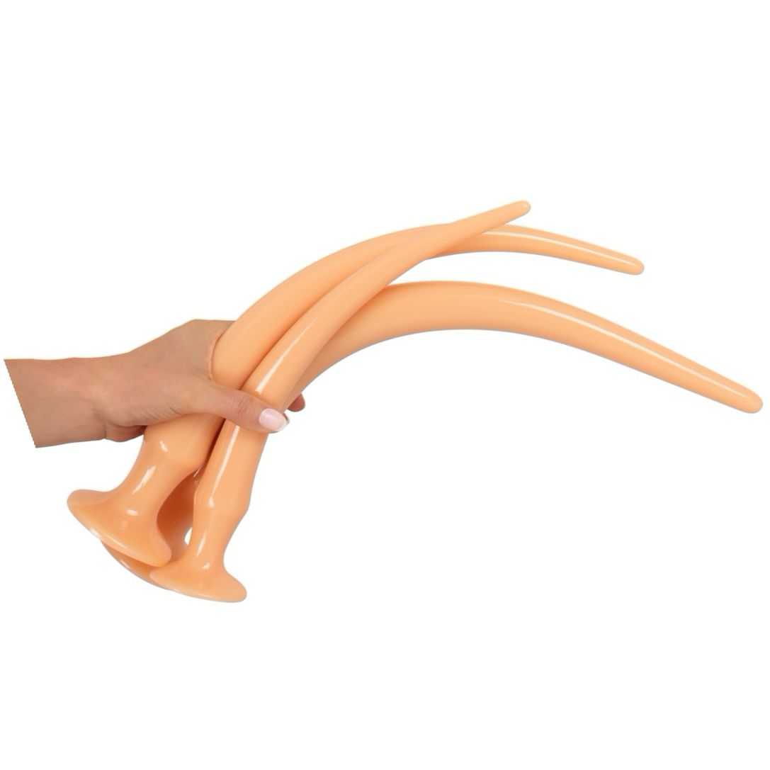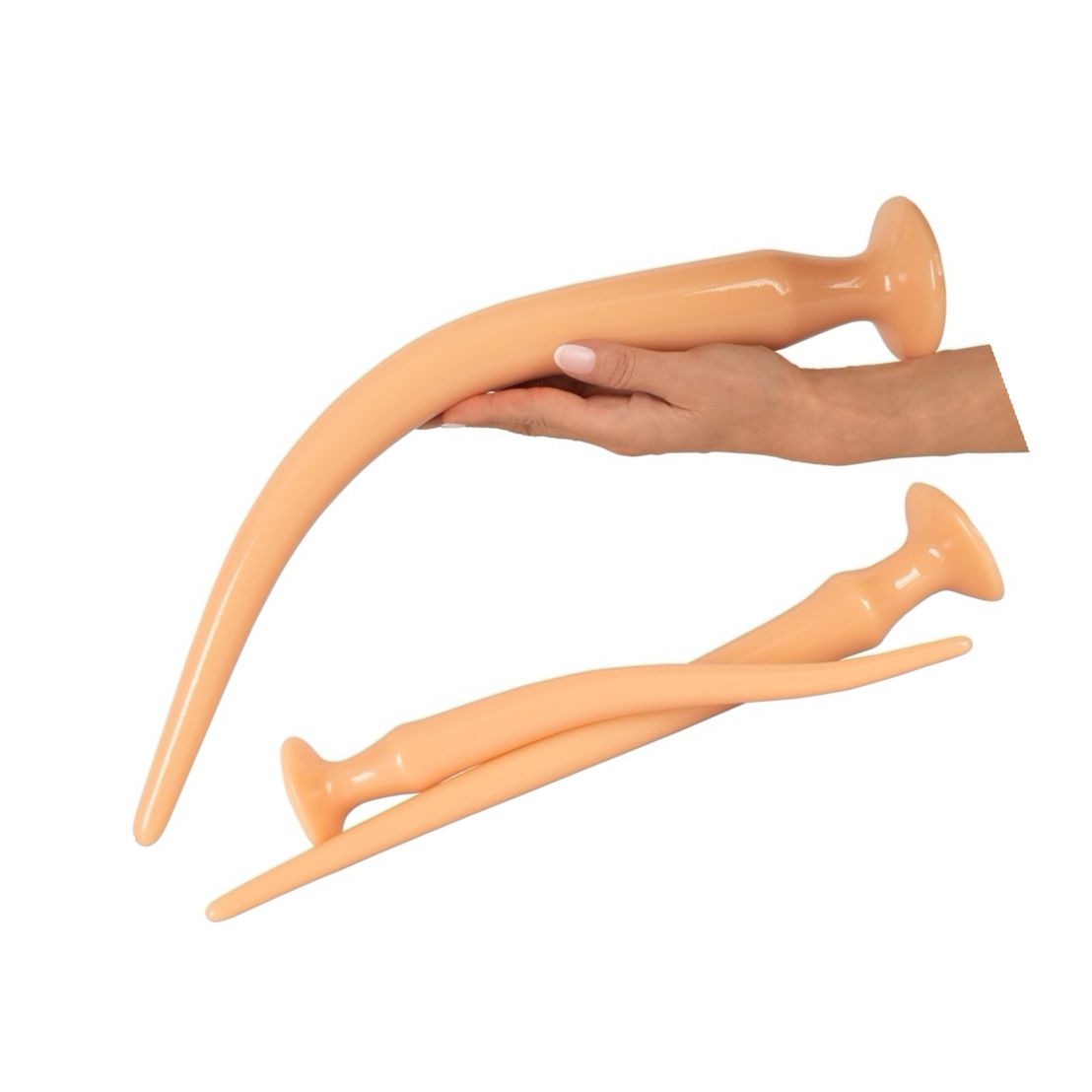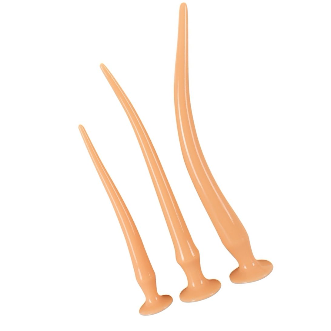 Set You2Toys Super Long: 3 pluguri anale foarte lungi, flexibile şi rezistente din PVC, cu pompă pentru fixare. Vârf conic pentru inserare mai uşoară. Dimensiuni progresive: mic, mediu, mare. Prescris cu lubrifiant.