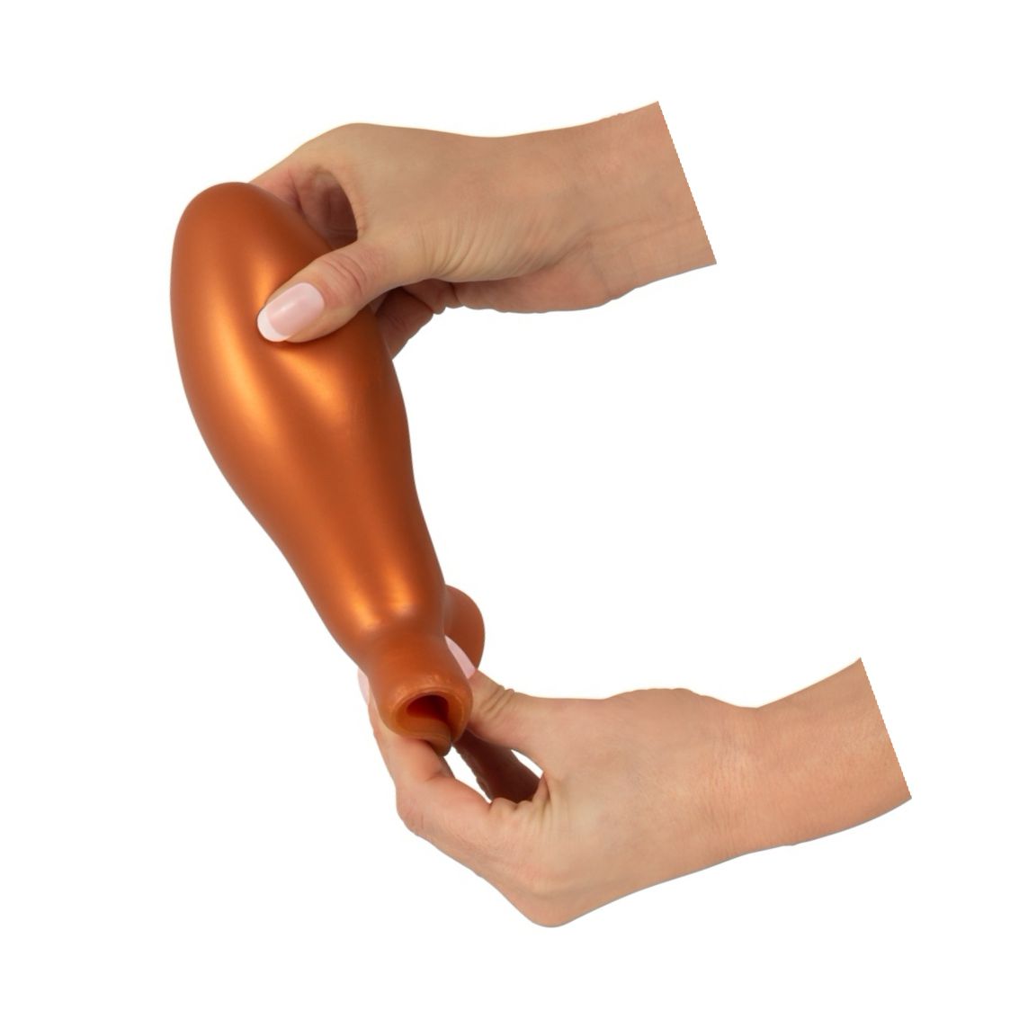 Beneficii și atribute: - Material: silicon lichid neted, non-poros - Cupă mare pentru stabilitate și hands-free - Design conic pentru inserție treptată - Flexibil, cu suficientă fermitate pentru control - Greutate 400 g pentru senzație de fixare - Dimensiuni exacte: inserabil 13.7 cm, diametru 6.4 cm - Fără componente electrice; fără greutate de curățat
