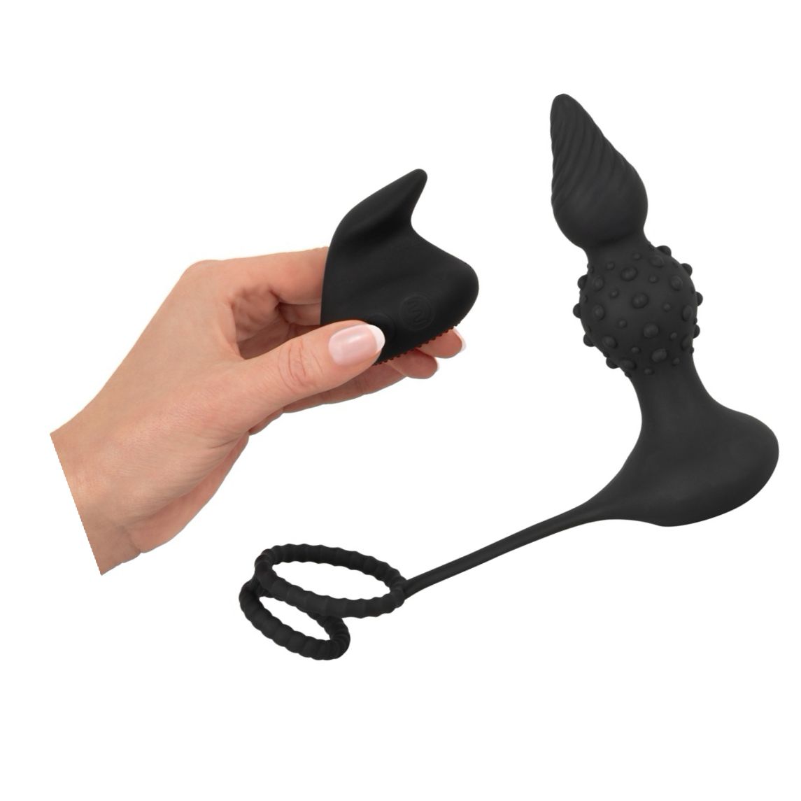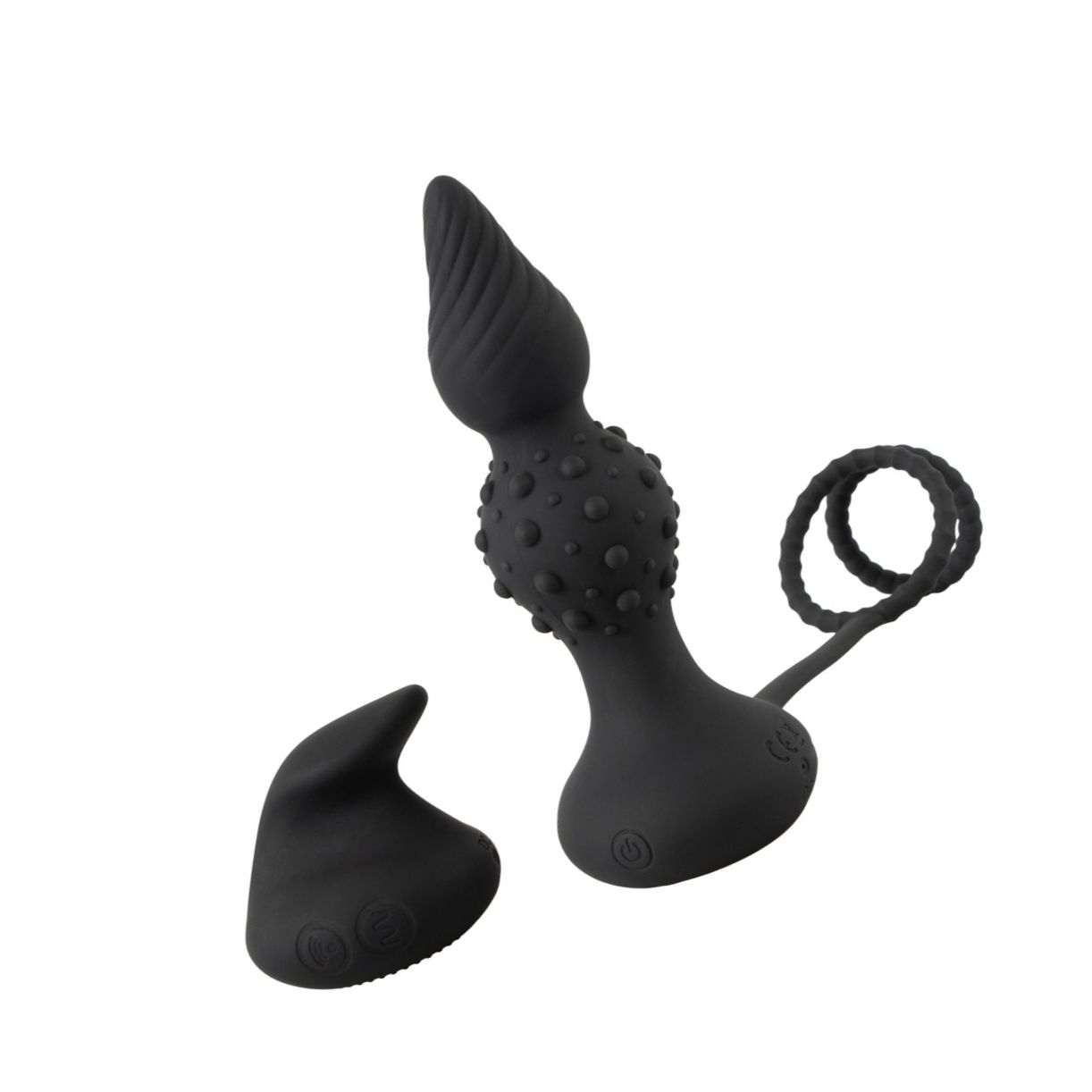 Beneficii și atribute concrete: - 10 moduri de vibrație pentru dop și 10 chipuri pentru telecomandă - Tele-comandă wireless ergonomic, funcționează și ca stimulator dedicat - Rază de acțiune telecomandă: până la 10 m - Reîncărcabil, cablu USB inclus - Material prietenos cu pielea: silicon (fără ftalați), PU, ABS - Inele flexibile pentru mădular și scrot, pentru sprijinire confortabilă - Bază solidă și ventuză pentru fixare temporară - Funcționare discretă și silențioasă