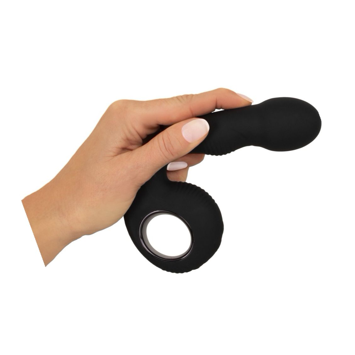 Două motoare independente permit control separat al capului și al mânerului, cu 10 moduri de vibrație. Inelul de prindere aduce manevrabilitate și funcție anal-safe pentru întrebuințare sigură. Textura din silicon moale facilitează inserția, iar canelurile amplifică senzațiile.